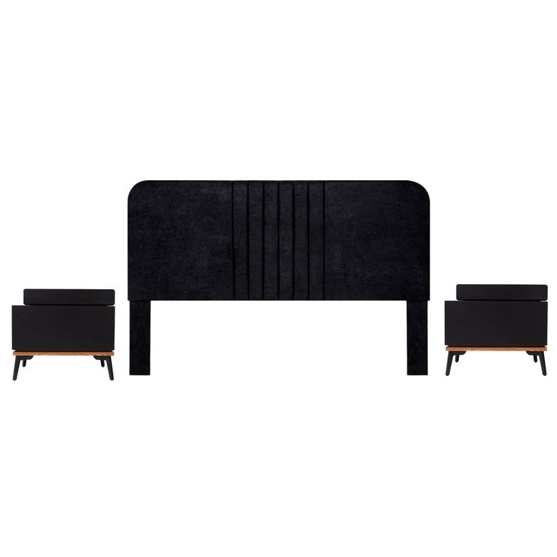 Juego de 3 piezas: incluye cabecera y dos burós. No incluye base ni colchón. Se adapta a cualquier tamaño de base y colchón.