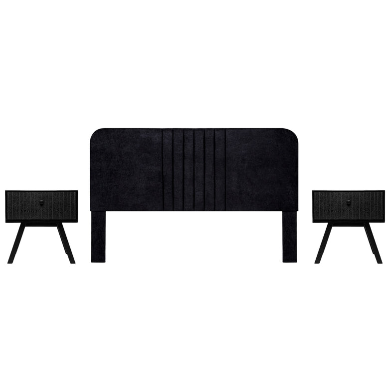 Juego de 3 piezas: incluye cabecera y dos burós. No incluye base ni colchón. Se adapta a cualquier tamaño de base y colchón.