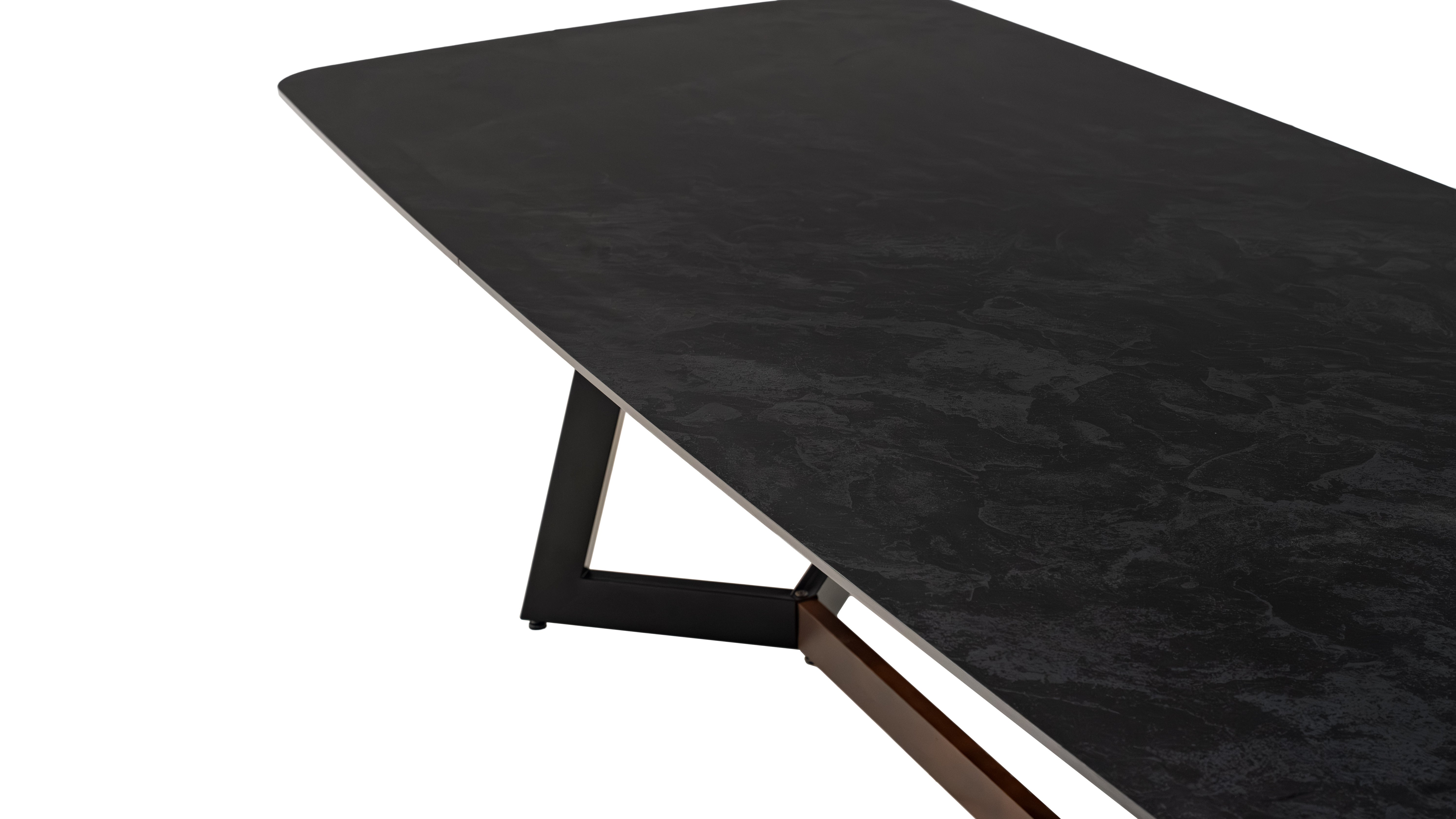 MATERIAL: Comedor mesa de color negro con 8 sillas de color gris con patas encino