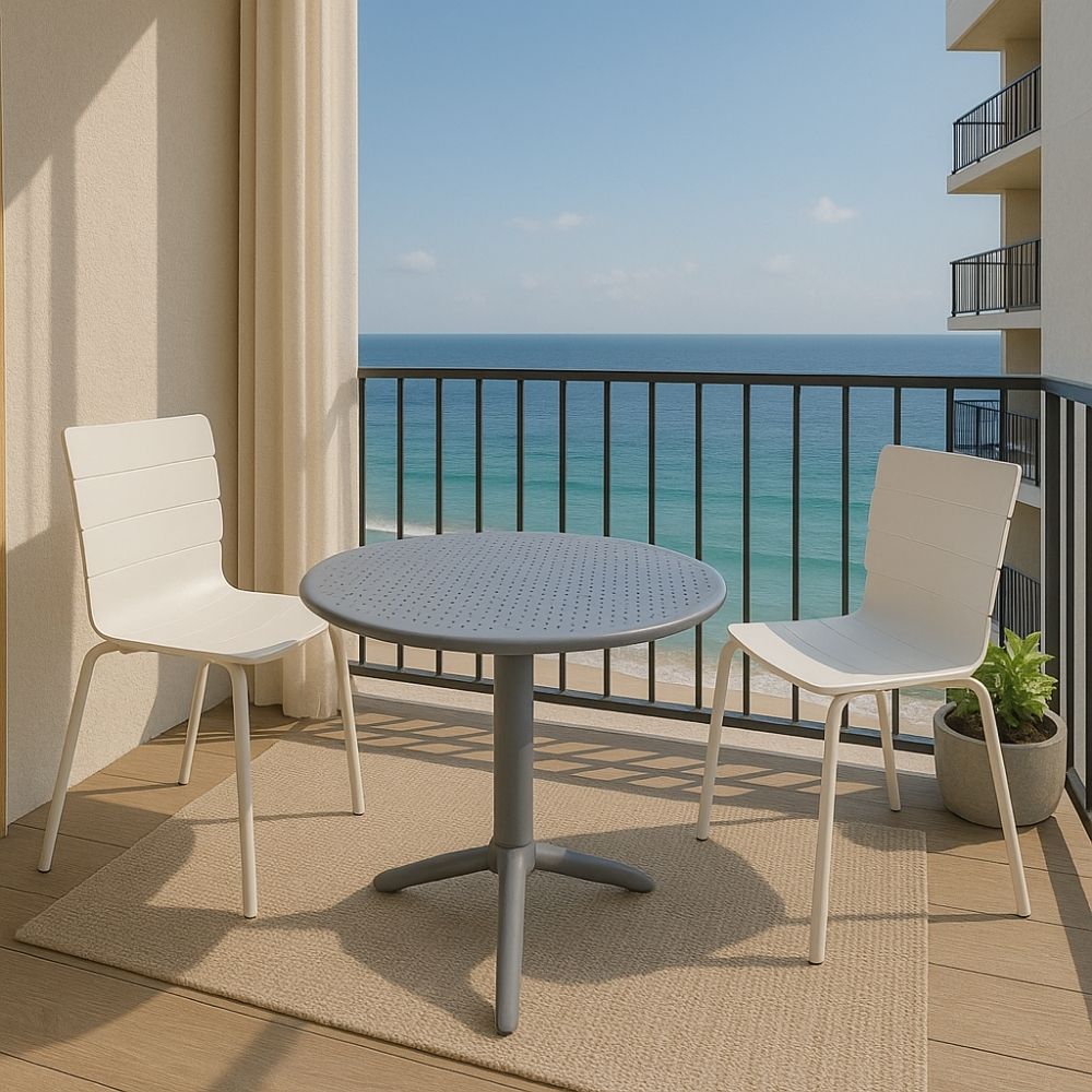 La Mesa Redonda Bahía en Gris Oxford es perfecta para reuniones al exterior con estilo. Su diseño redondo favorece la interacción y aprovecha mejor el espacio, mientras que su estructura resistente y acabado moderno la convierten en una opción duradera y elegante para jardines, patios o terrazas.
