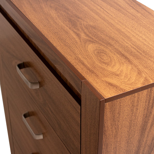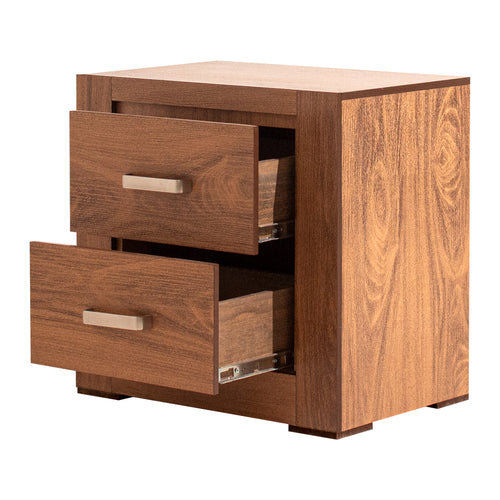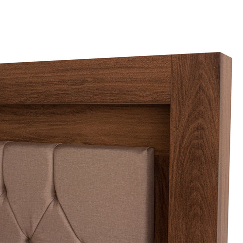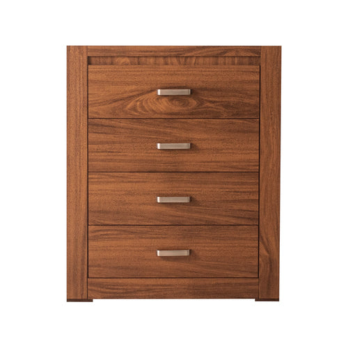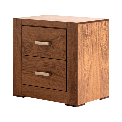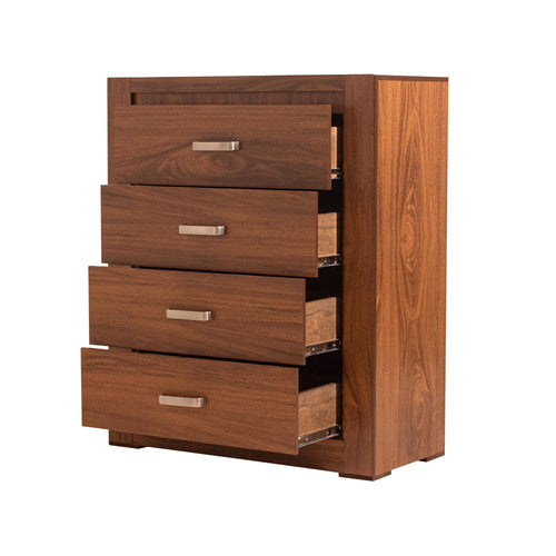 Recámara de 4 piezas en color nogal. Incluye cabecera, 2 Burós, Cómoda. Se adapta a cualquier medida de base y colchón. Se entrega armada. No incluye base ni colchón.