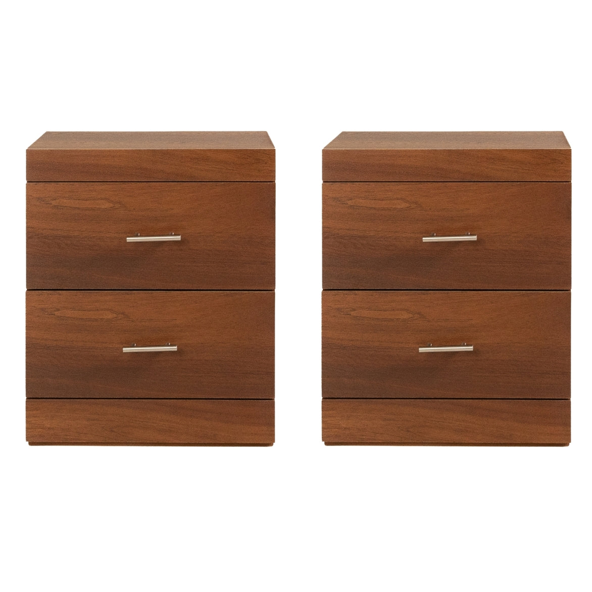 Set de 2 Burós con 2 Cajones Color Parota con Jaladeras de Metal