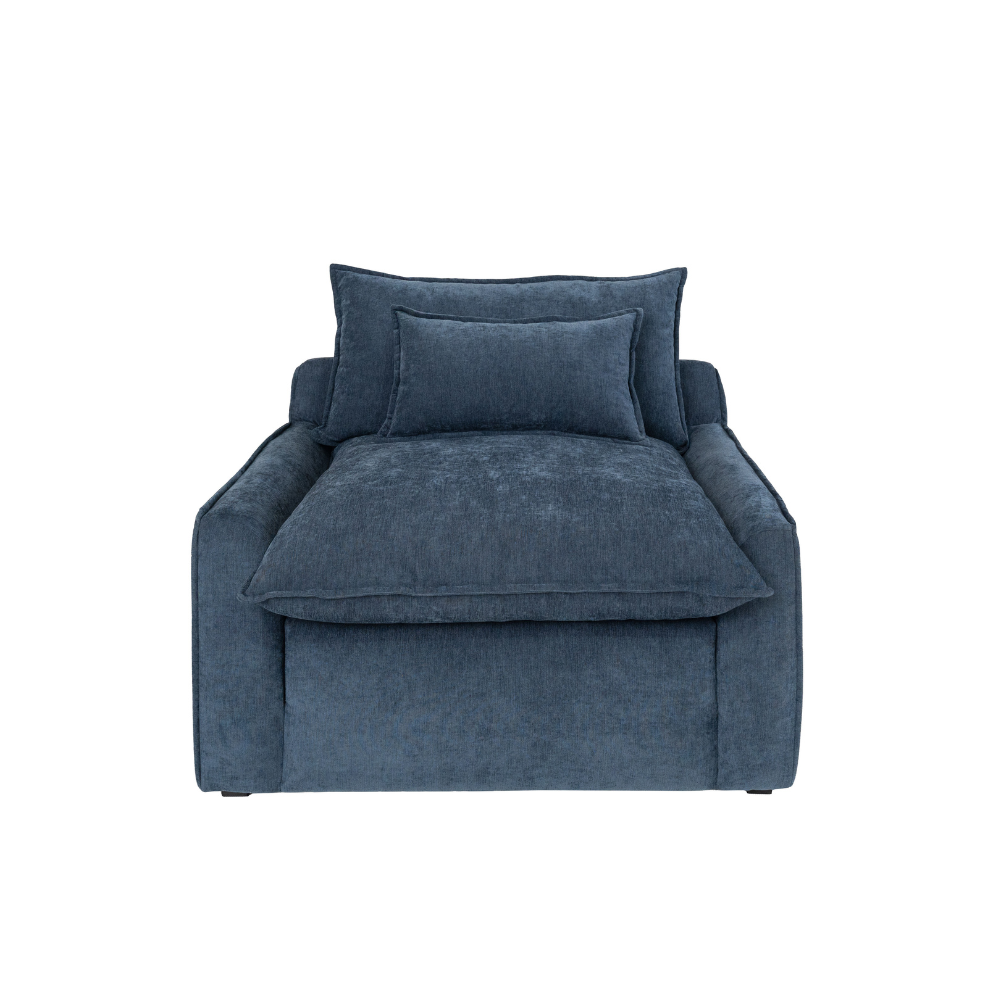 Sillón de 1 Plaza Acolchado en Hule Espuma y Fibra Down Color Azul Marino. Estructura de Madera Sólida