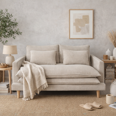 Hay muebles que se miran, y otros que se sienten. Nuestro sillón de 2 plazas pertenece a los segundos. Transforma cualquier rincón en un espacio de calma y bienestar. Su tapizado evoca la naturalidad y la elegancia de lo sencillo, mientras sus fundas dobles reflejan un diseño pensado para el confort absoluto. Sus amplios cojines, ofrecen espacio suficiente para maximizar el descanso, volviéndose el lugar donde el día se rinde y la calma comienza. Las patas de madera natural aportan un toque cálido y contemporáneo que armoniza con cualquier estilo de interior, aportando equilibrio a su silueta contemporánea.