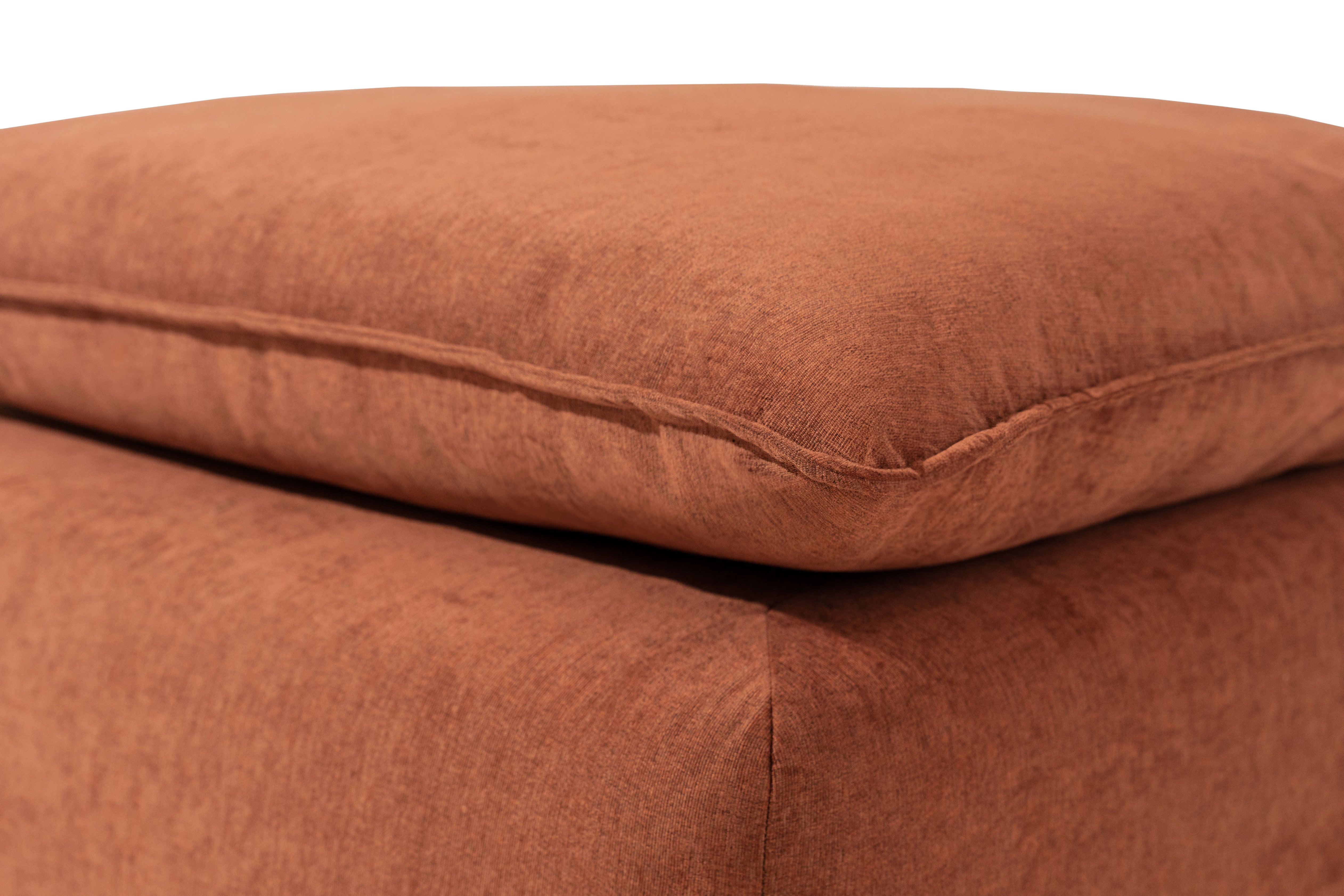 Nuestro taburete con silueta plana y look de "almohada", diseñado para ofrecer confort excepcional en salas de TV y espacios de descanso. Este taburete es ideal para quienes valoran el verdadero descanso: su profundidad generosa permite disfrutar de momentos únicos y excepcionales de relajación. El revestimiento ultra suave del taburete te envuelve en confort absoluto, asegurando que no querrás separarte de él. Gracias al grosor de su asiento, proporciona una sensación similar a estar acostado en una cama, perfecto para una noche de descanso reparador o para su uso diario con máximo confort. Al combinarlo con el sofá puedes jugar con las formas y convertirlo en una cama individual o una sala esquinera de cualquier lado que acomode mejor a tu espacio. Además, está relleno de fibra down, un material ecológico y sustentable que tiene una tecnología que te hace pensar que estás sentado sobre plumas de ganso y lo mejor es que siempre va a recuperar su densidad. No incluye el sofá de las imágenes.