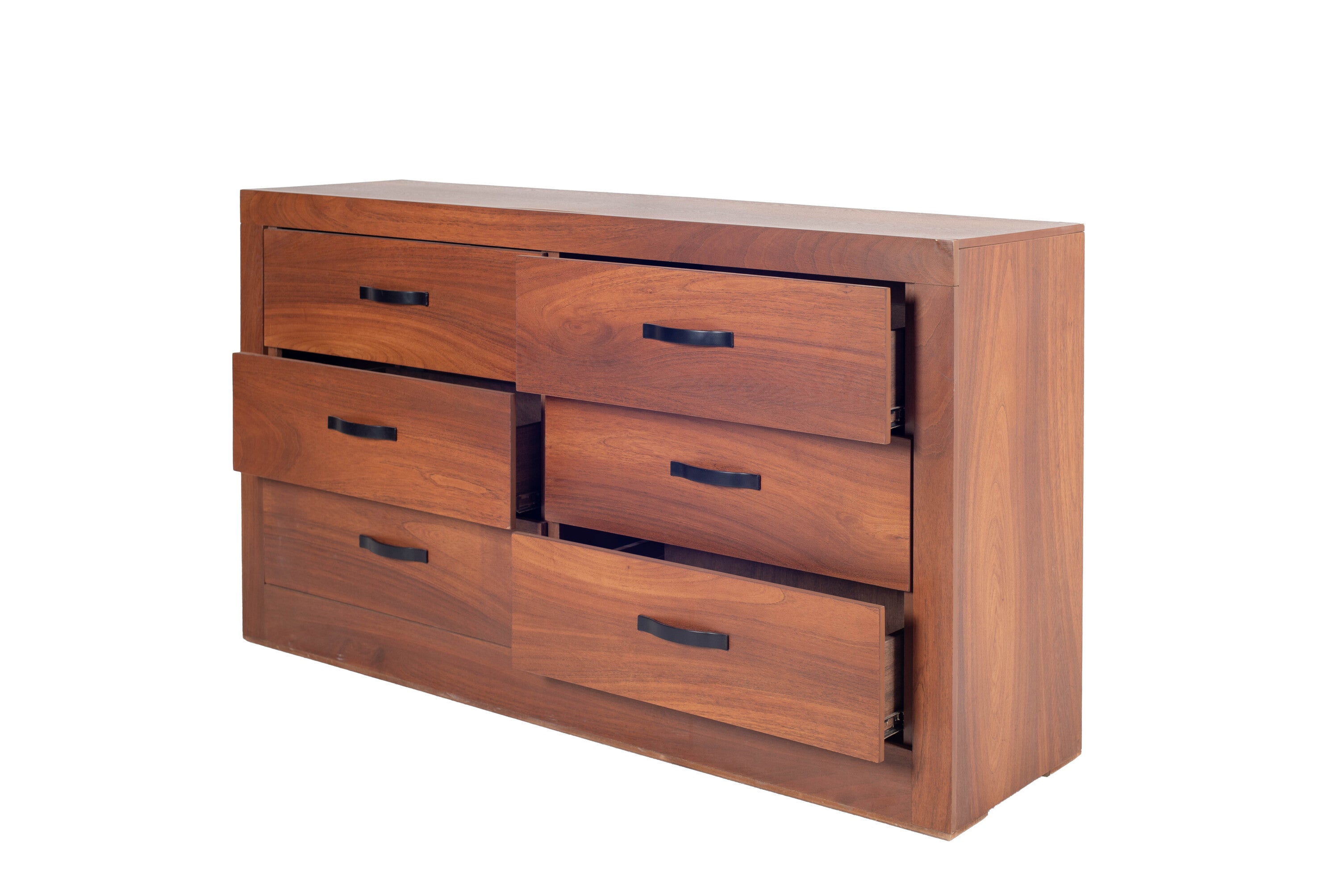 Set de cómoda con 2 burós de color parota. Se entrega armado.