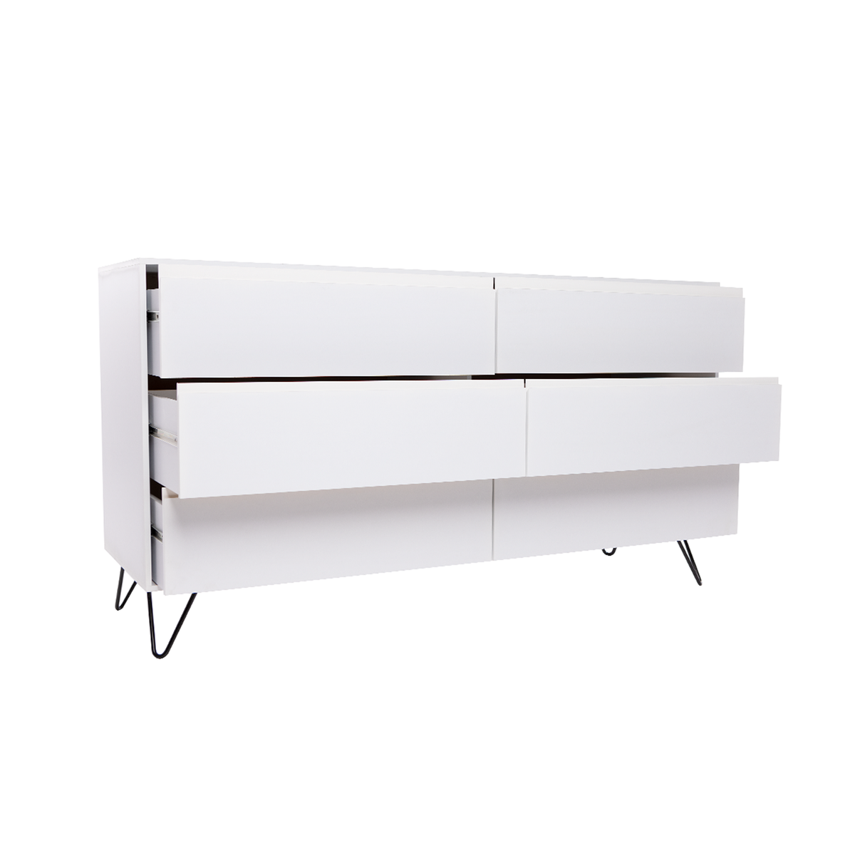 Set de Cómoda de 6 cajones con 2 burós de color blanco. Se entrega armado.
