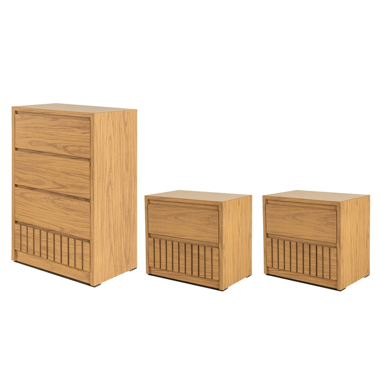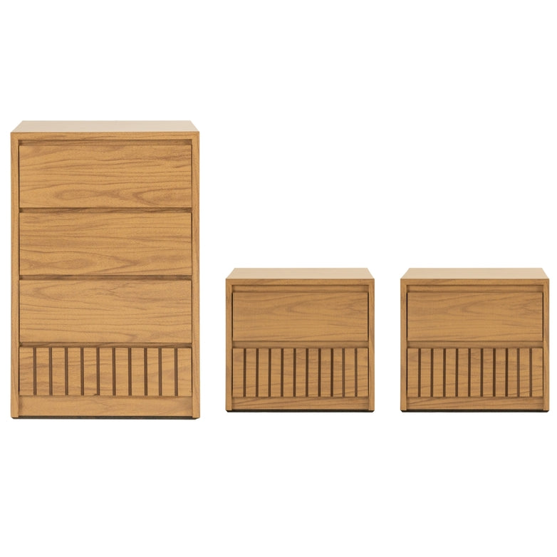 Set de cómoda con 2 burós de color natural. Se entrega armado.