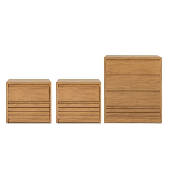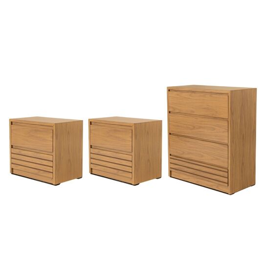 Set de cómoda con 2 burós de color natural. Se entrega armado.