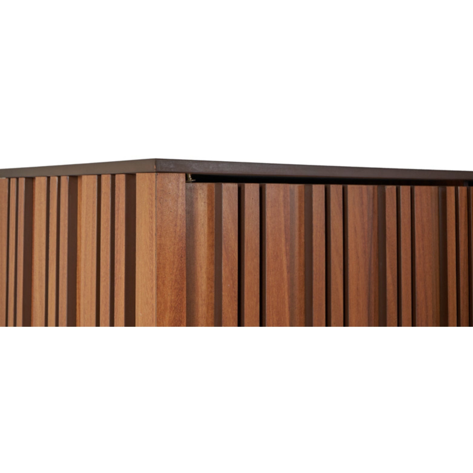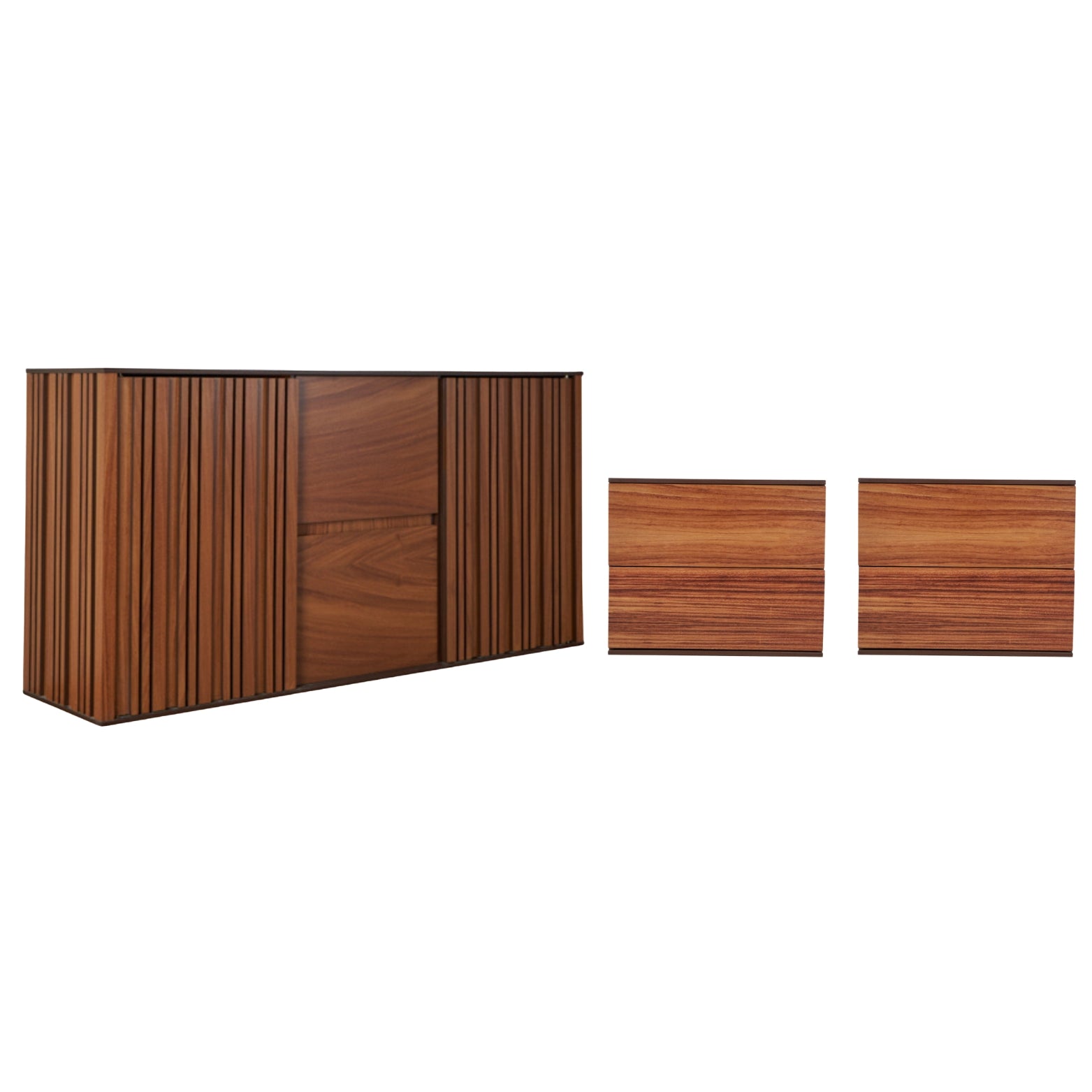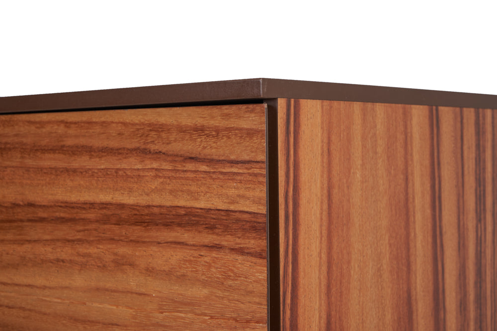 Set de cómoda con 2 burós de color parota. Se entrega armado.