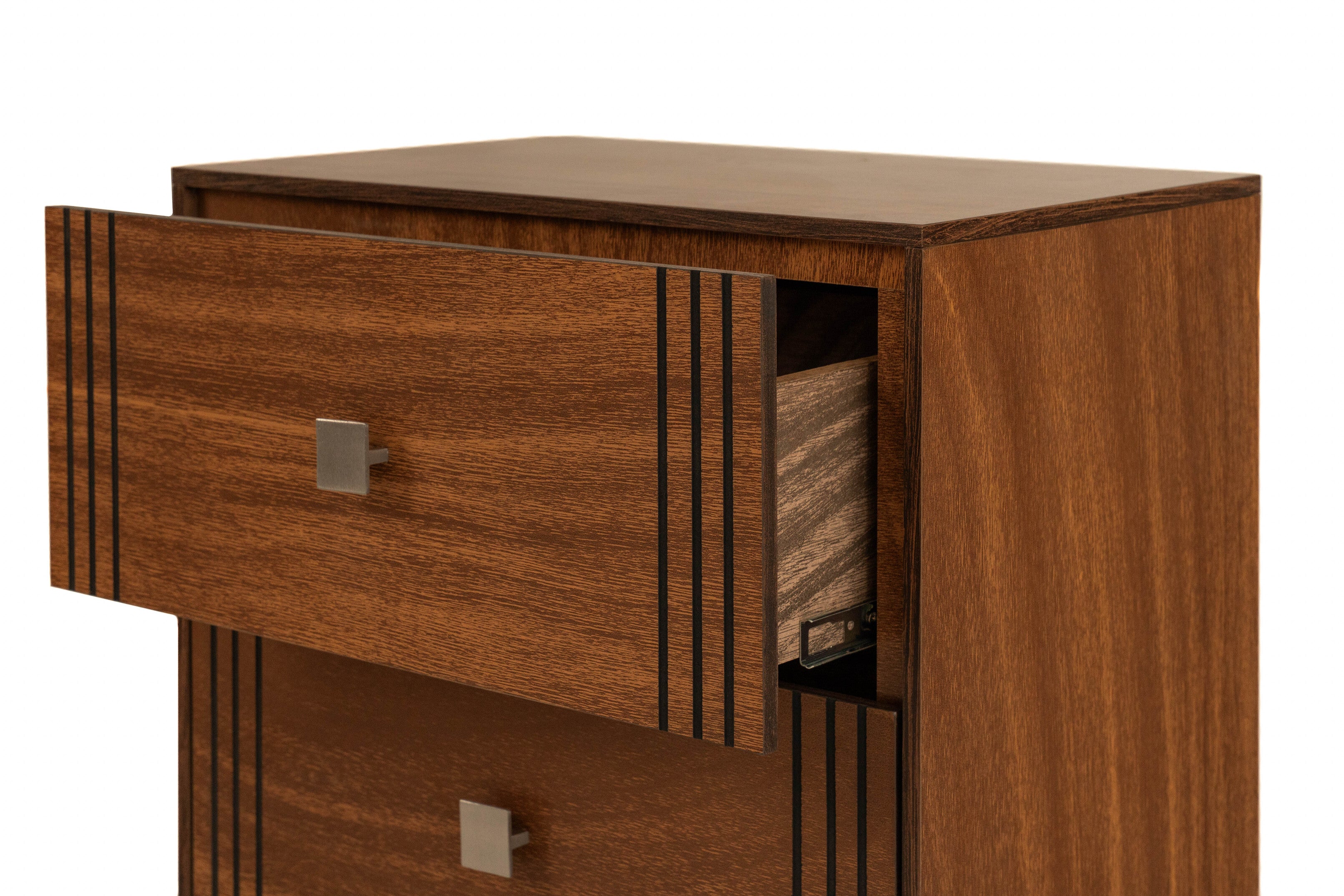 Set de cómoda con 2 burós de color parota. Se entrega armado.