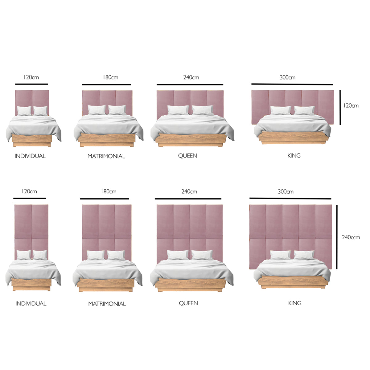 Juego de 3 paneles para cabecera modular matrimonial / queen size Lunaria - Rosa