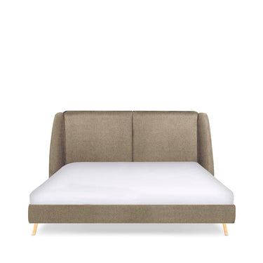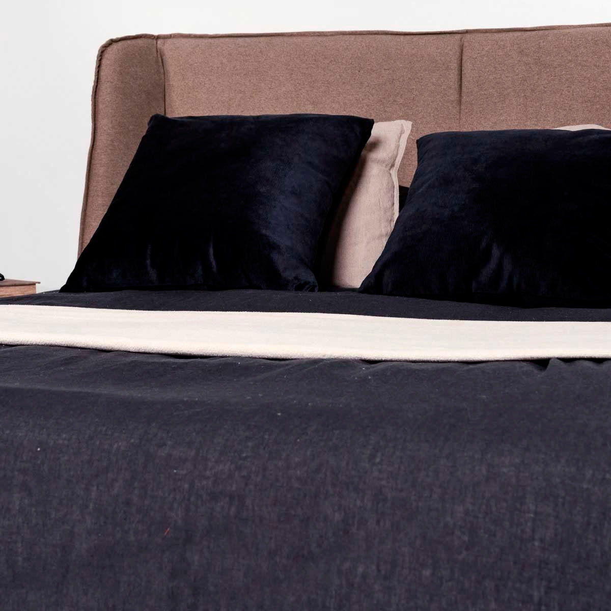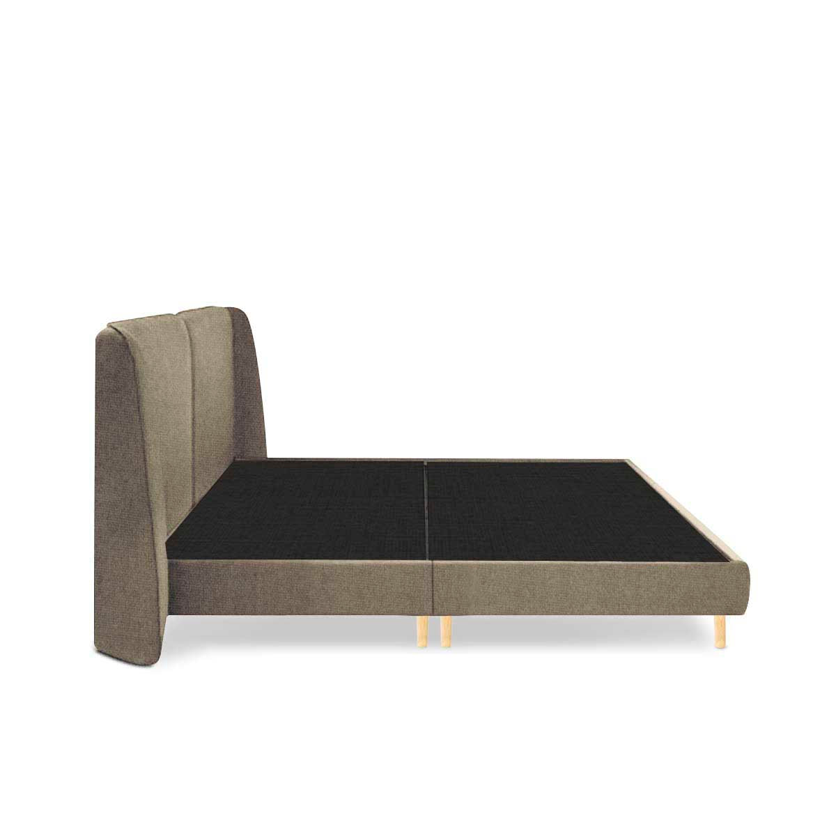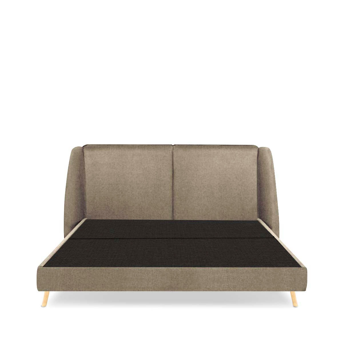 Base y cabecera king tapizada en lino con hule espuma de 17 kg. Patas de madera.
