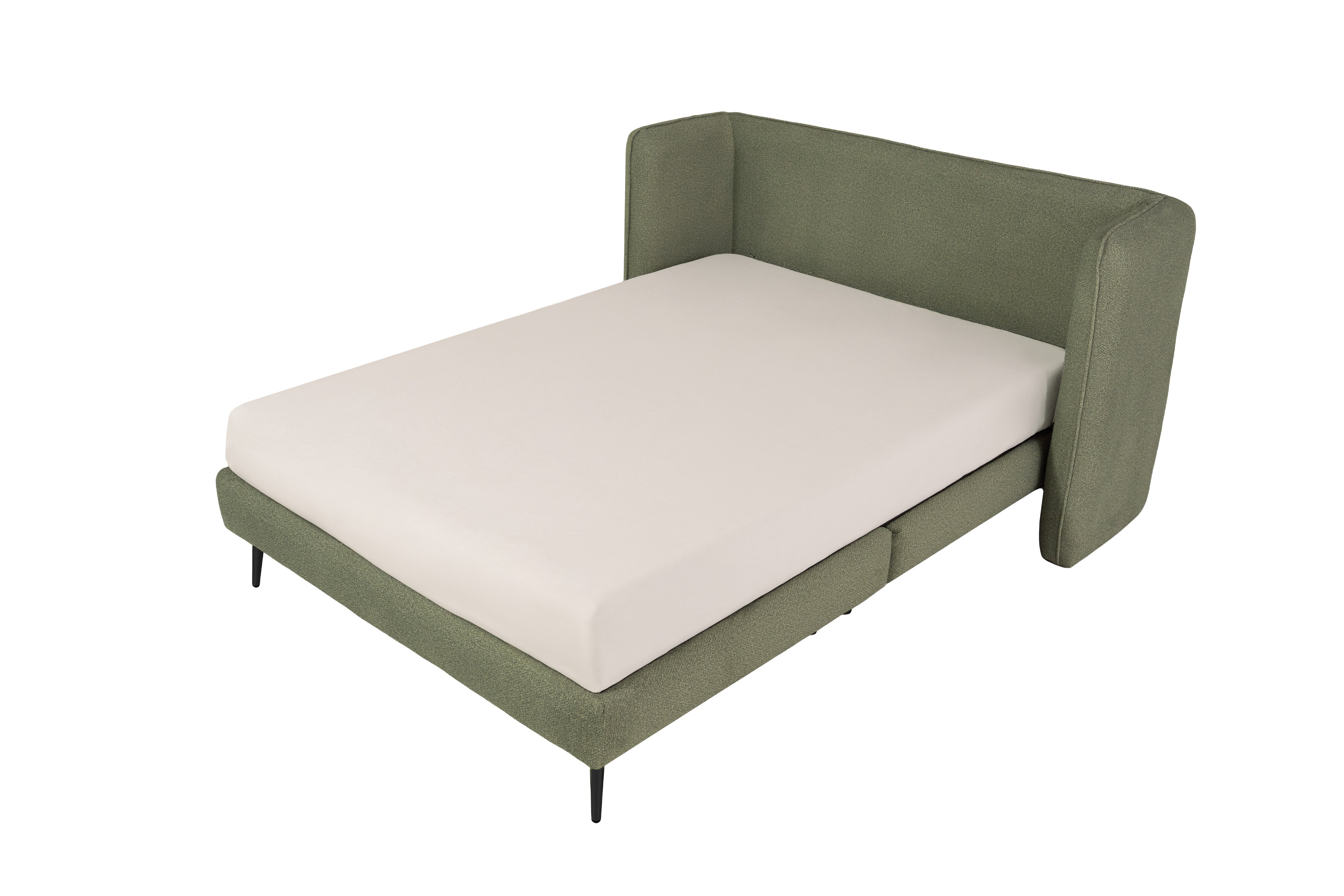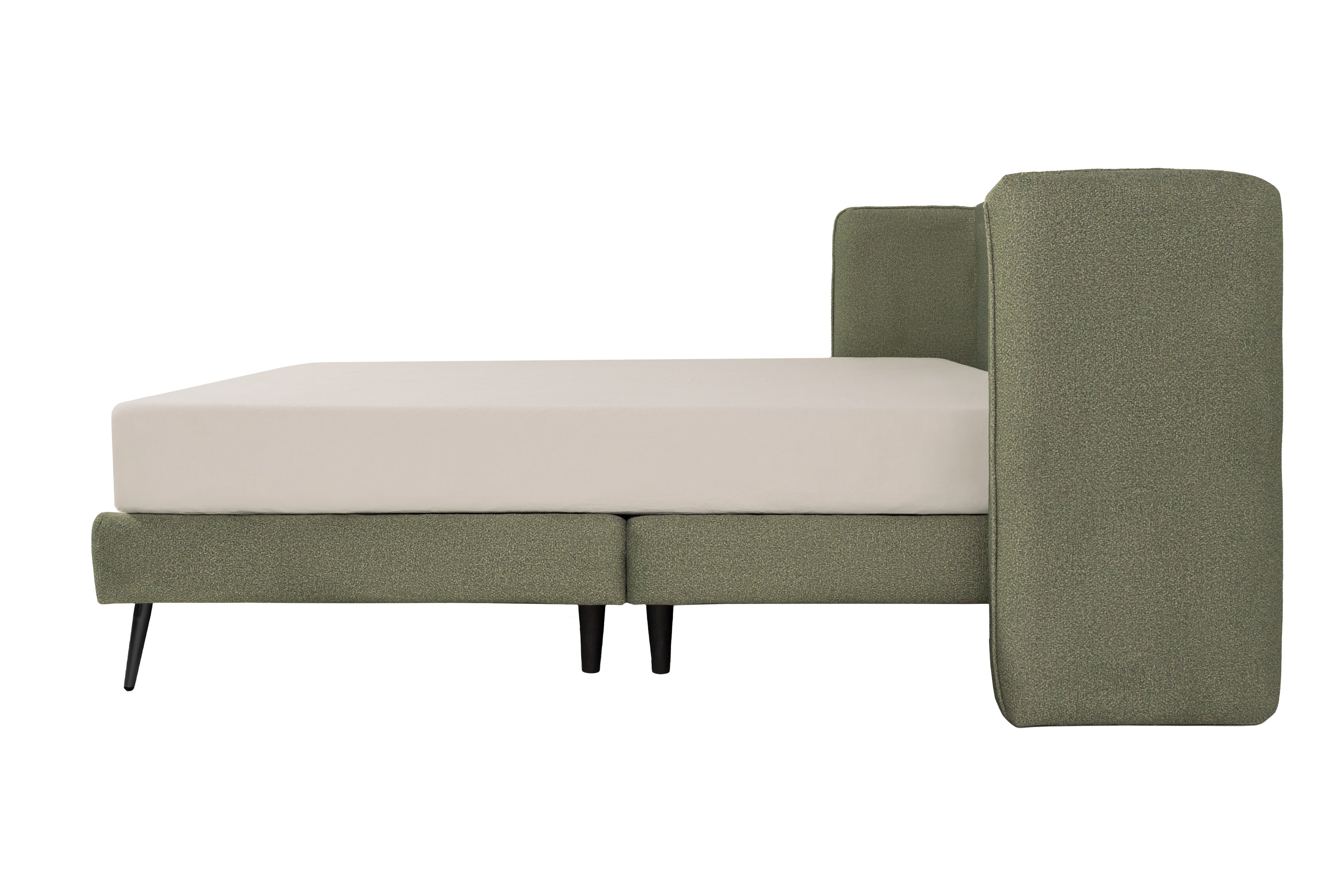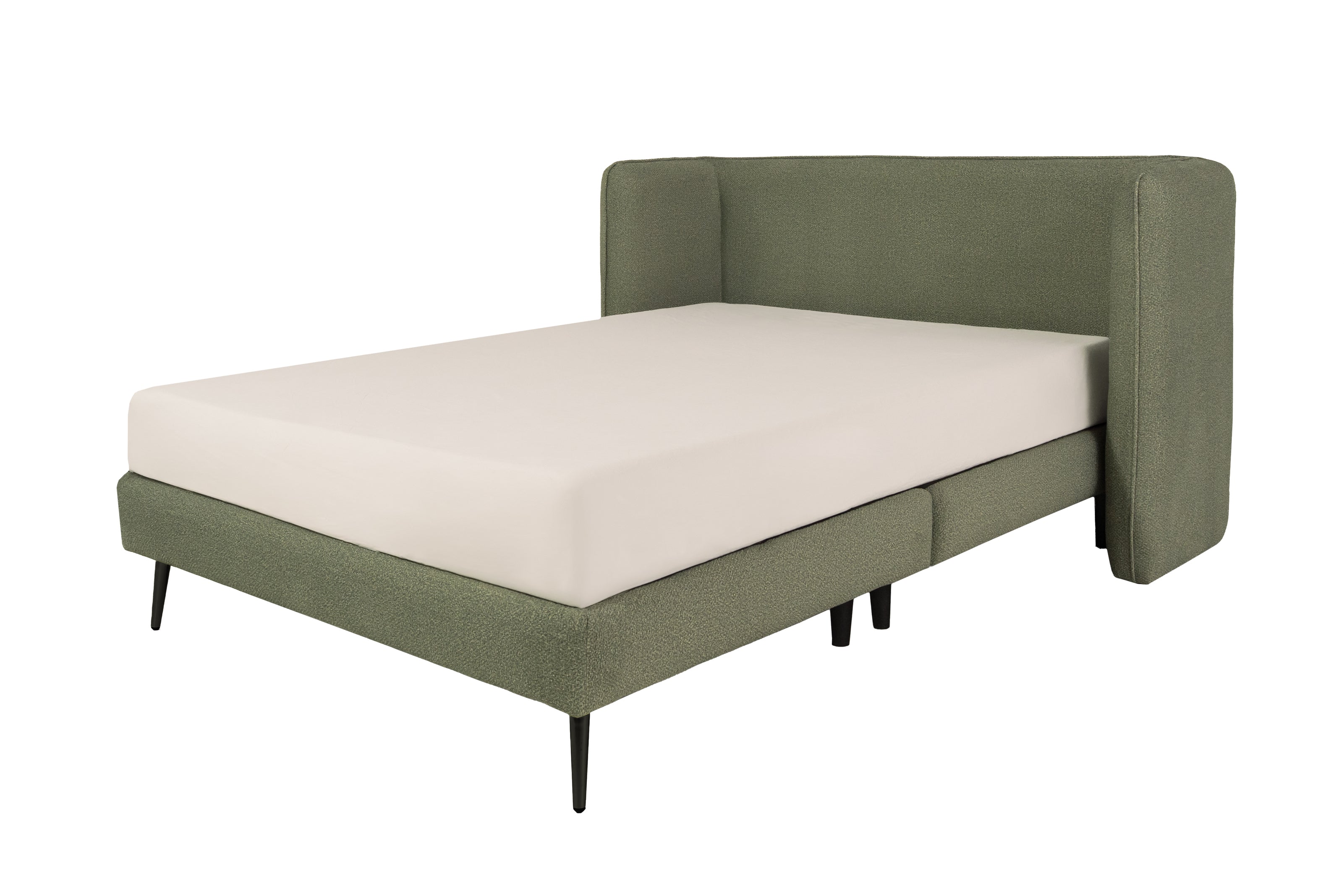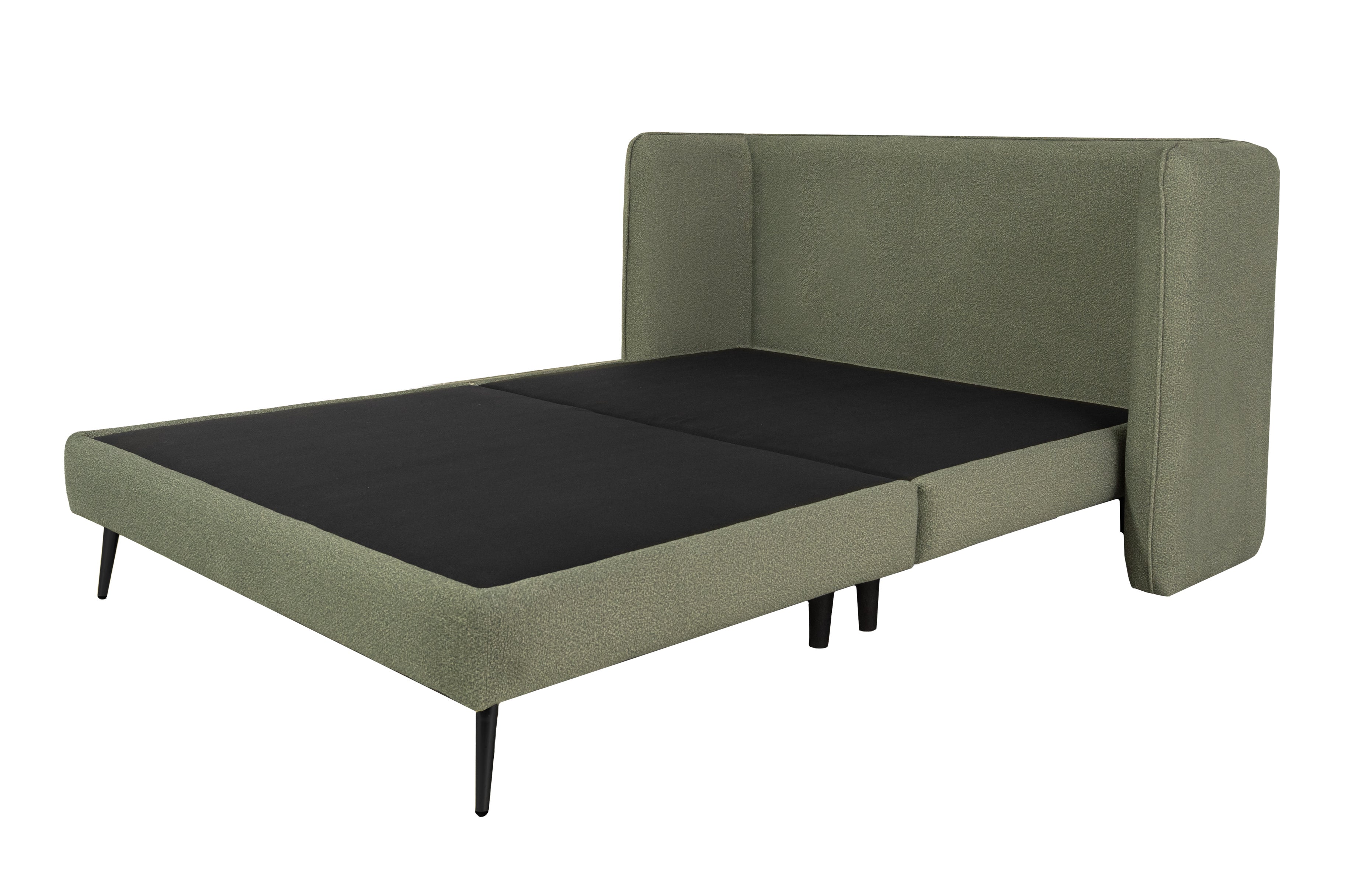 Diseño moderno con textura que destaca. Esta cama Matrimonial, tapizada en tela bouclé color olivo, combina un estilo contemporáneo con una textura rica y acogedora. La tela bouclé aporta una sensación táctil única y un efecto visual sofisticado, ideal para dar carácter al dormitorio. El tono olivo añade un matiz natural y elegante, creando un ambiente sereno con un toque distintivo de diseño.