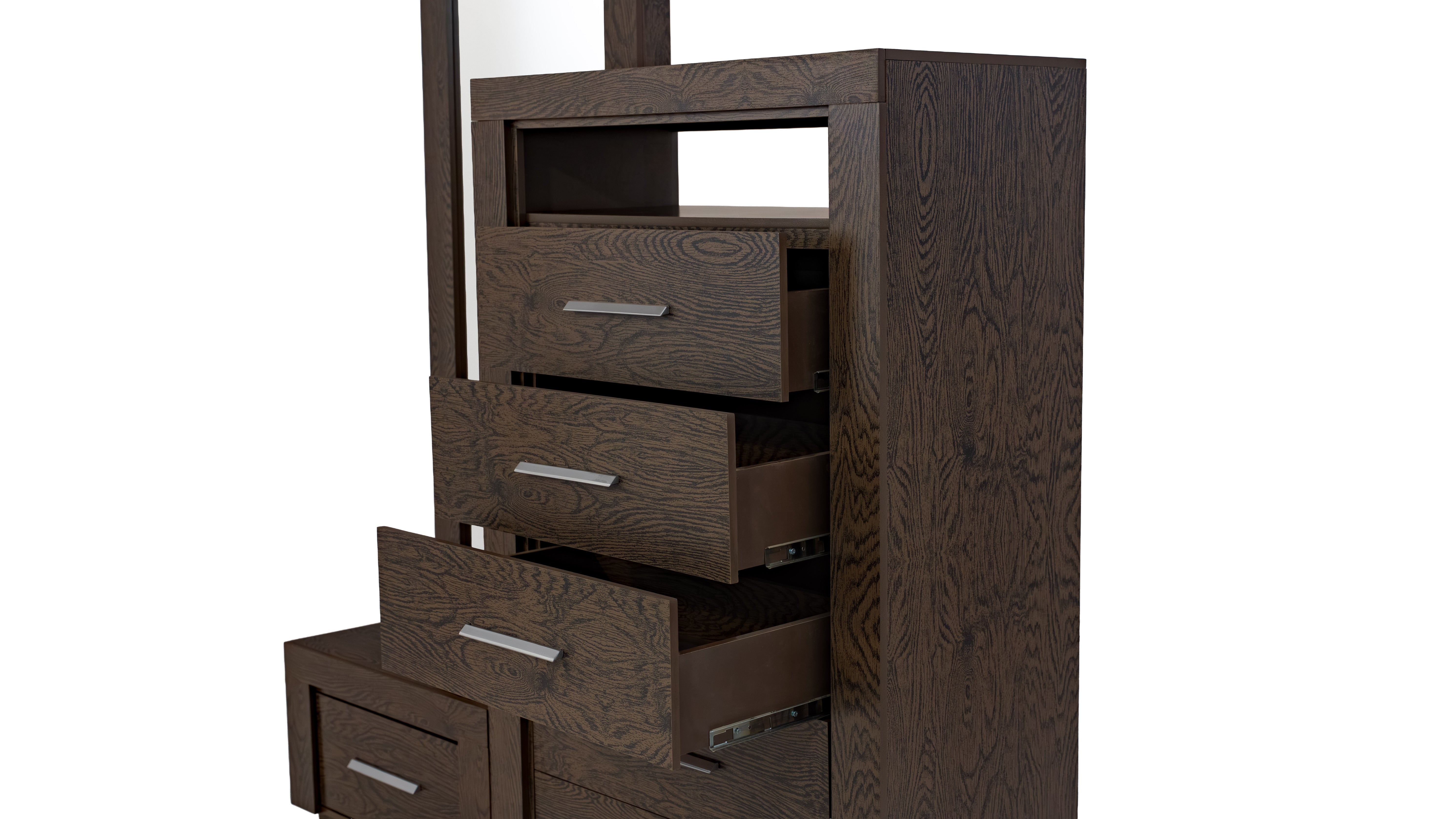 Este set incluye una cómoda y un espejo, dos piezas que combinan funcionalidad, estilo y elegancia para transformar tu espacio. La cajonera ofrece amplios cajones para organizar ropa y objetos personales, manteniendo tu dormitorio ordenado y con un toque sofisticado. El espejo crea el lugar perfecto para maquillarse, arreglarse o simplemente prepararse para el día, brindando comodidad y estilo. Ideal para cualquier recámara, ya sea para uso personal o para complementar la decoración de tu hogar, este vanity se entrega completamente armado para un uso inmediato. Un conjunto perfecto para un hogar organizado, moderno y lleno de estilo.