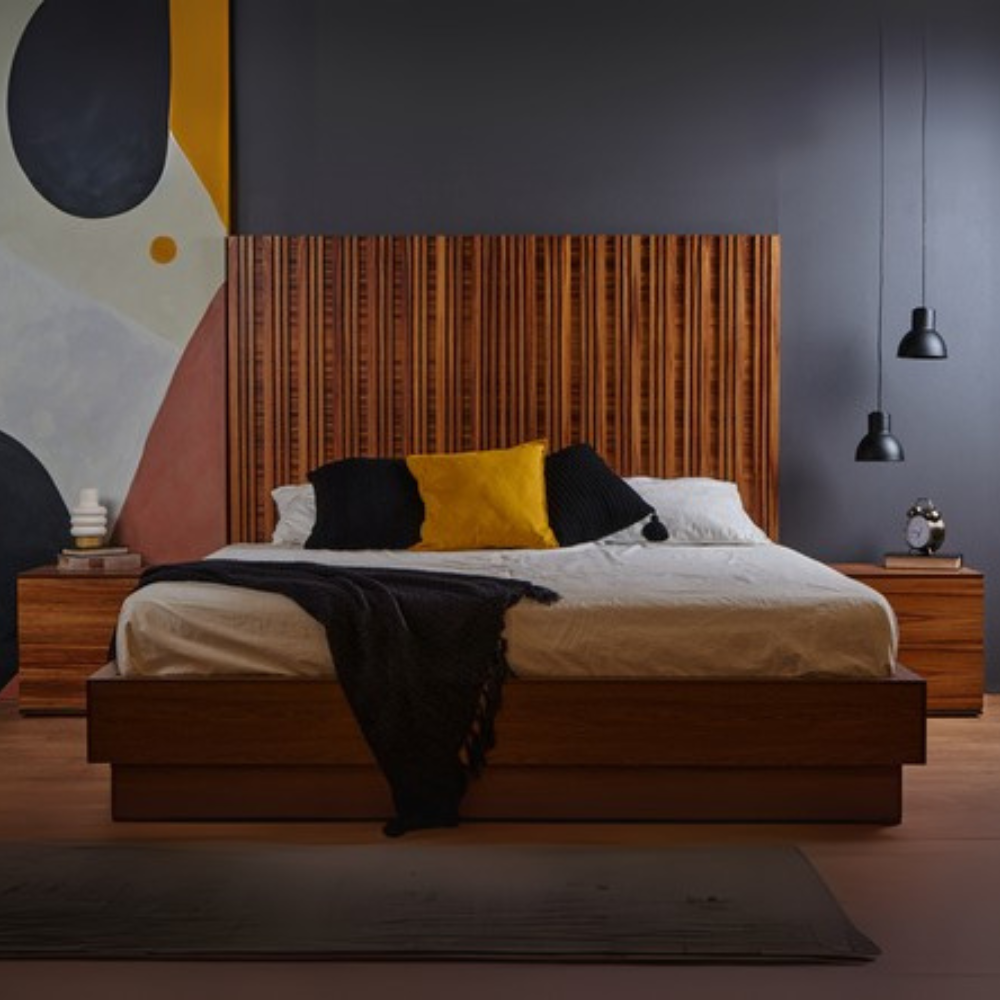 Cabecera con 2 burós Color Parota. Se entrega armado. No incluye base ni colchón.