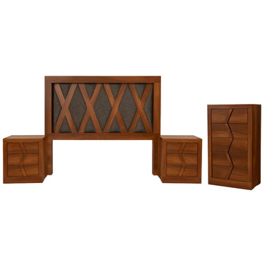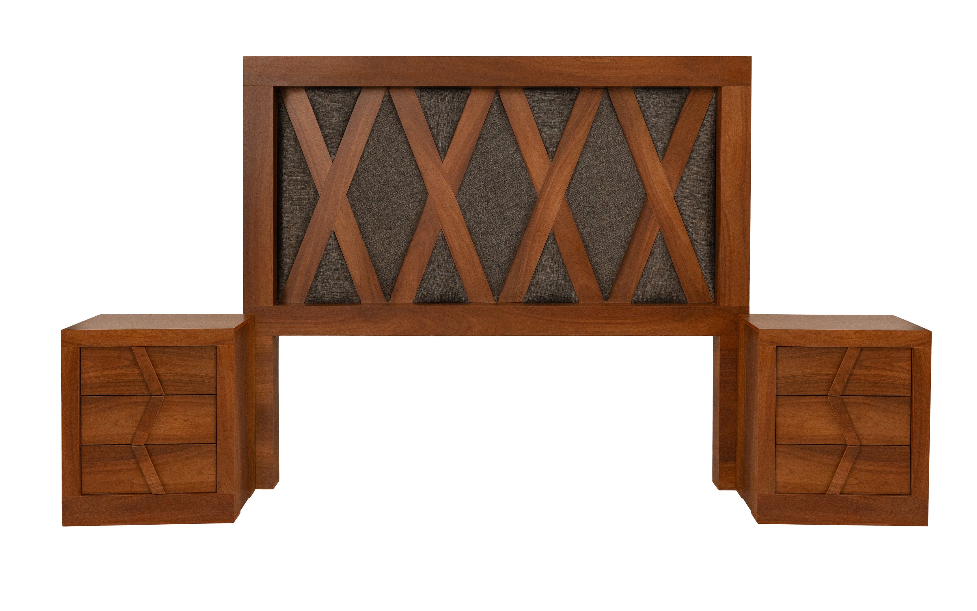 Juego de 4 piezas: incluye cabecera, dos burós y cómoda. No incluye base ni colchón. Se adapta a cualquier tamaño de base y colchón.