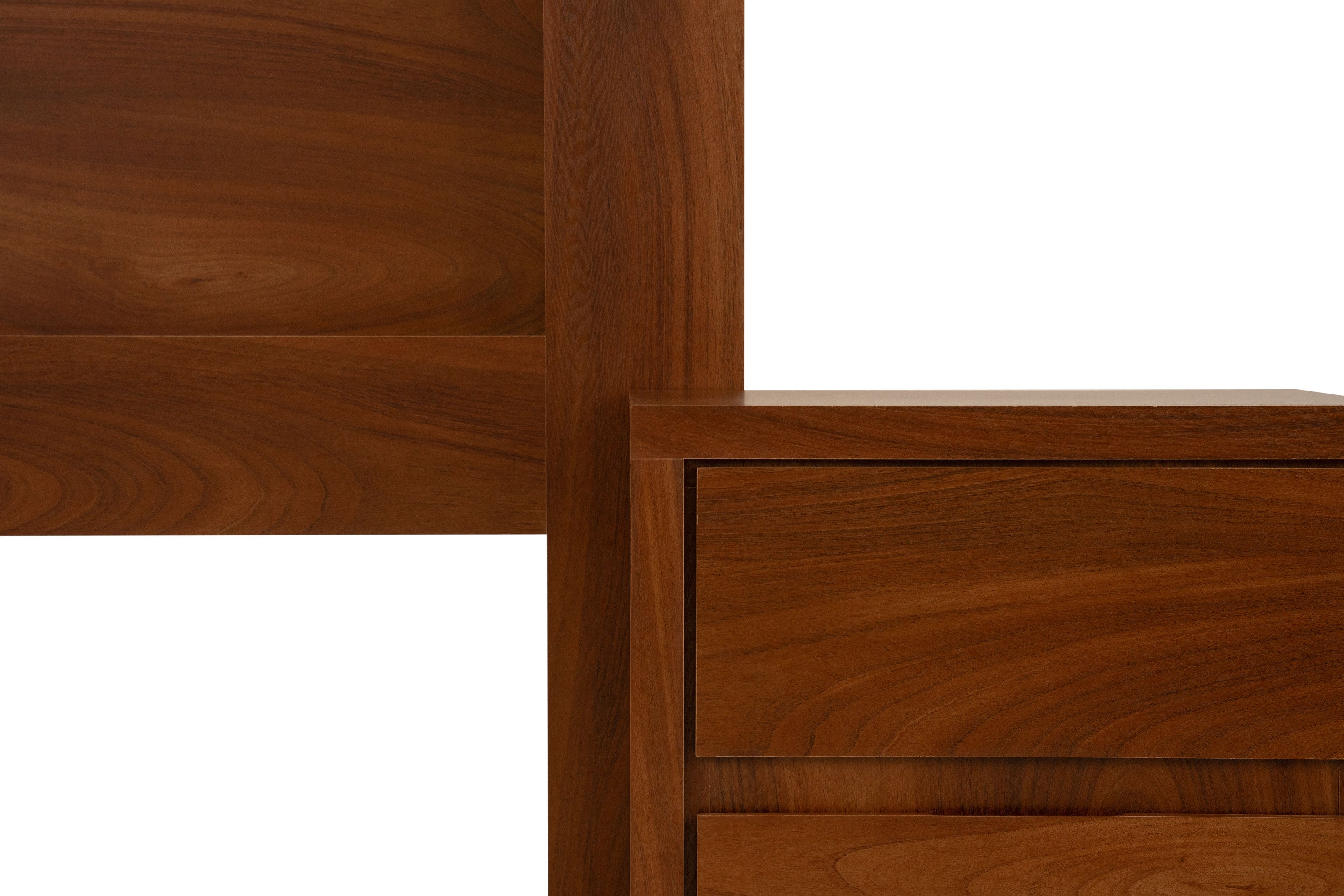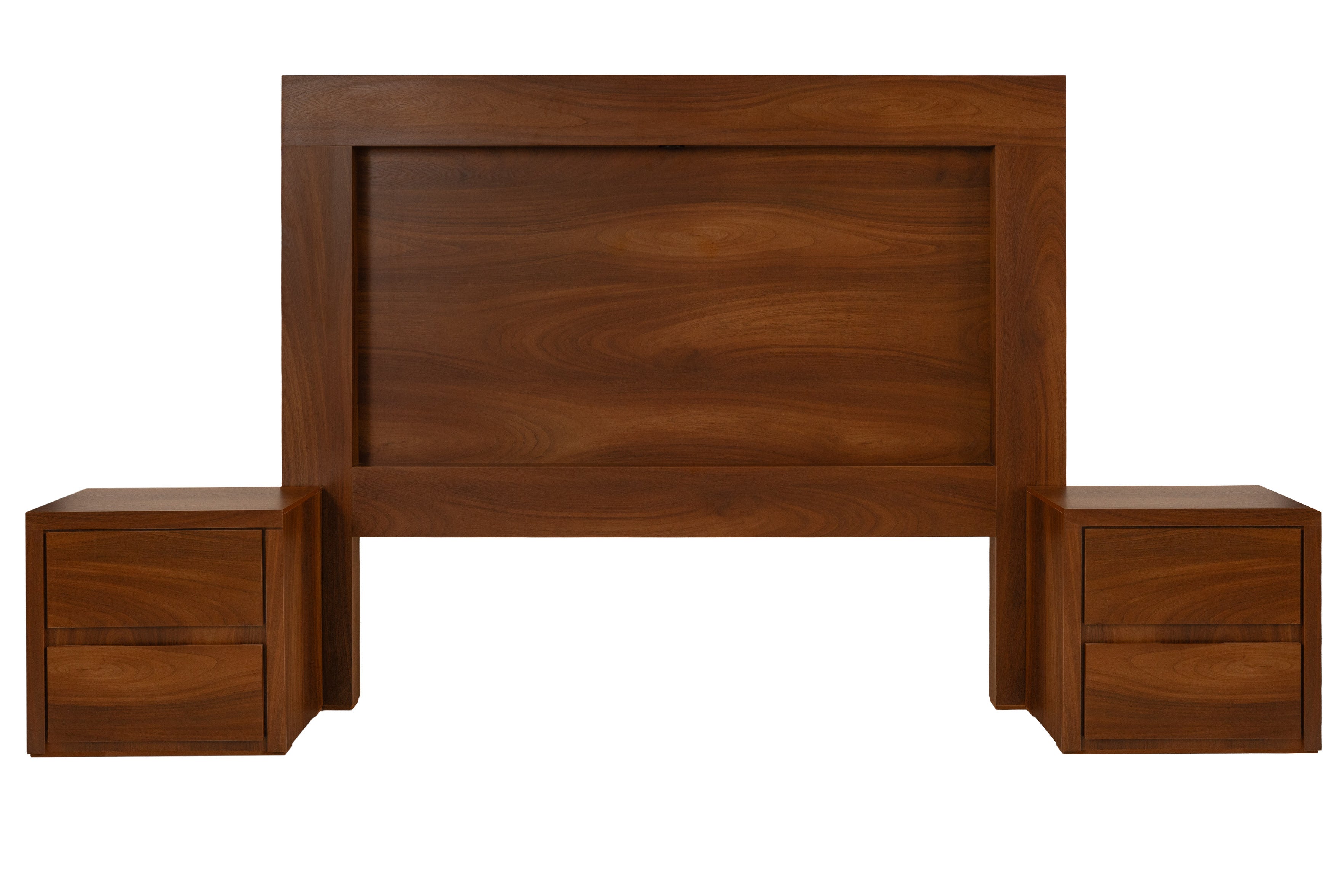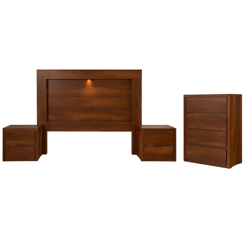 Juego de 4 piezas: incluye cabecera, dos burós y cómoda. No incluye base ni colchón. Se adapta a cualquier tamaño de base y colchón.