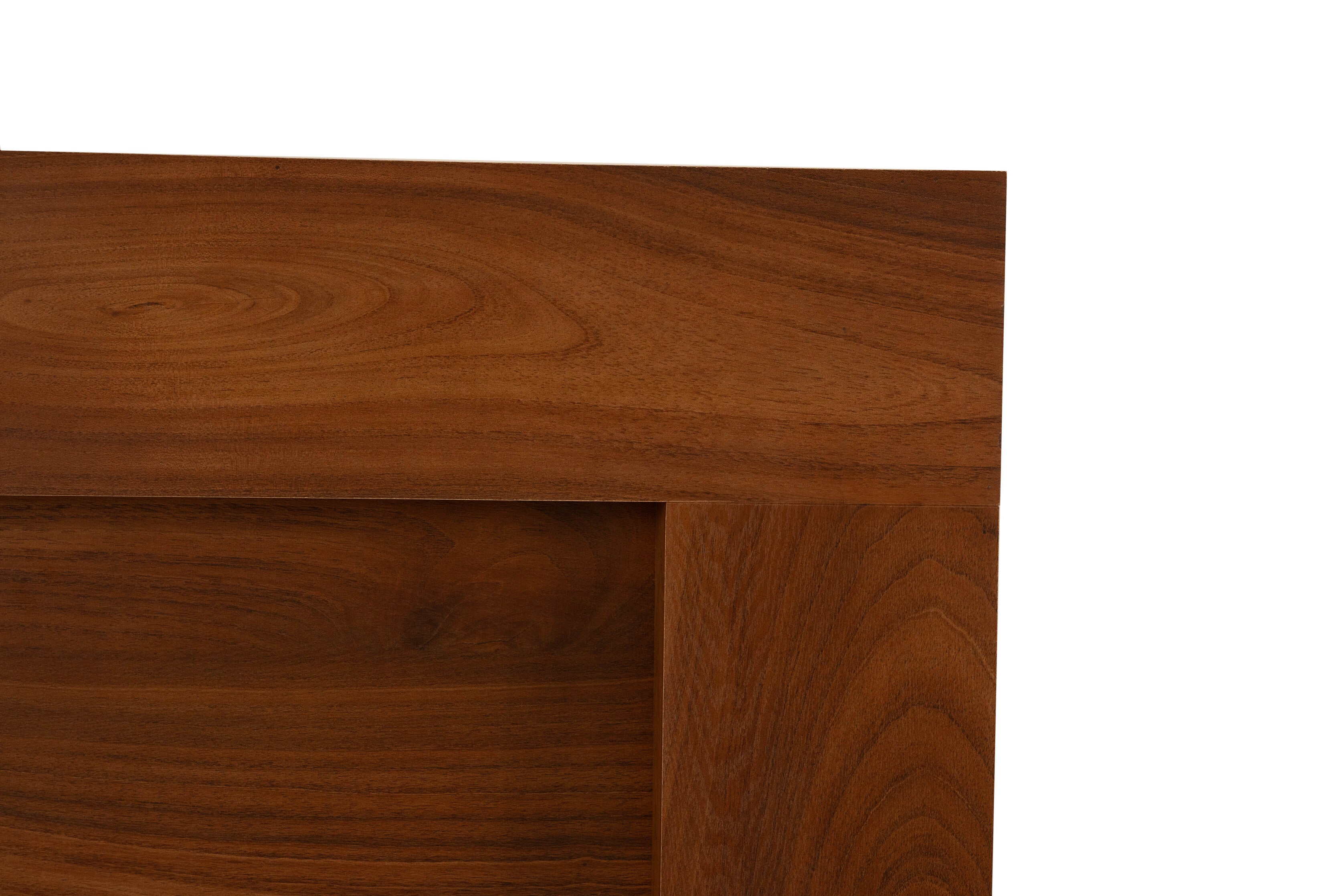 Recámara de 4 piezas en color nogal. Incluye cabecera, 2 Burós, Cómoda. Se adapta a cualquier medida de base y colchón. Se entrega armada. No incluye base ni colchón.