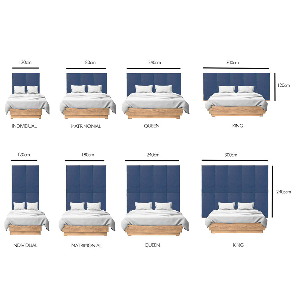 Cabecero Tapizado en Tela Velvet - 4 Paneles para Cabecera con Altura Ajustable Color Azul Cobalto Ideal para Cama King Size