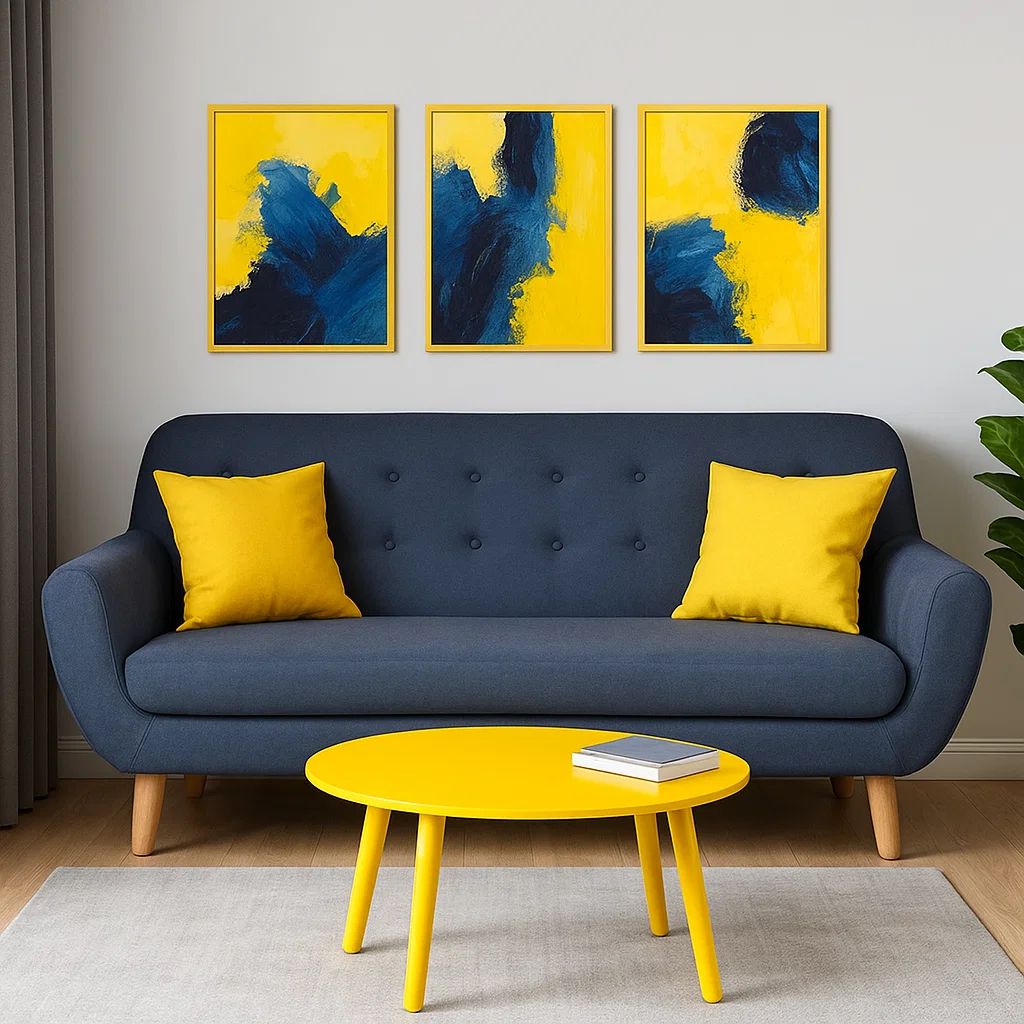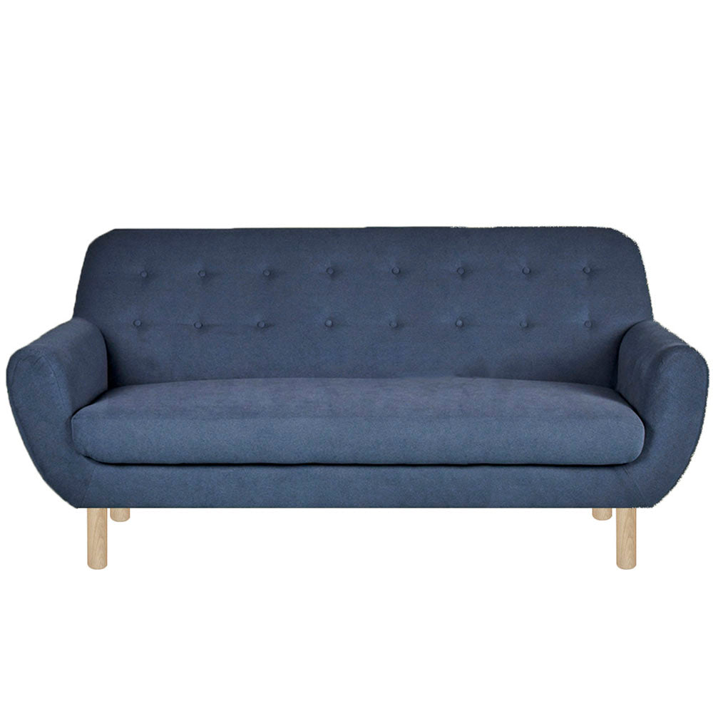 Sofá de 3 Plazas Tapizado en Tela Ultra Suave Color Azul. Estructura de Madera Sólida
