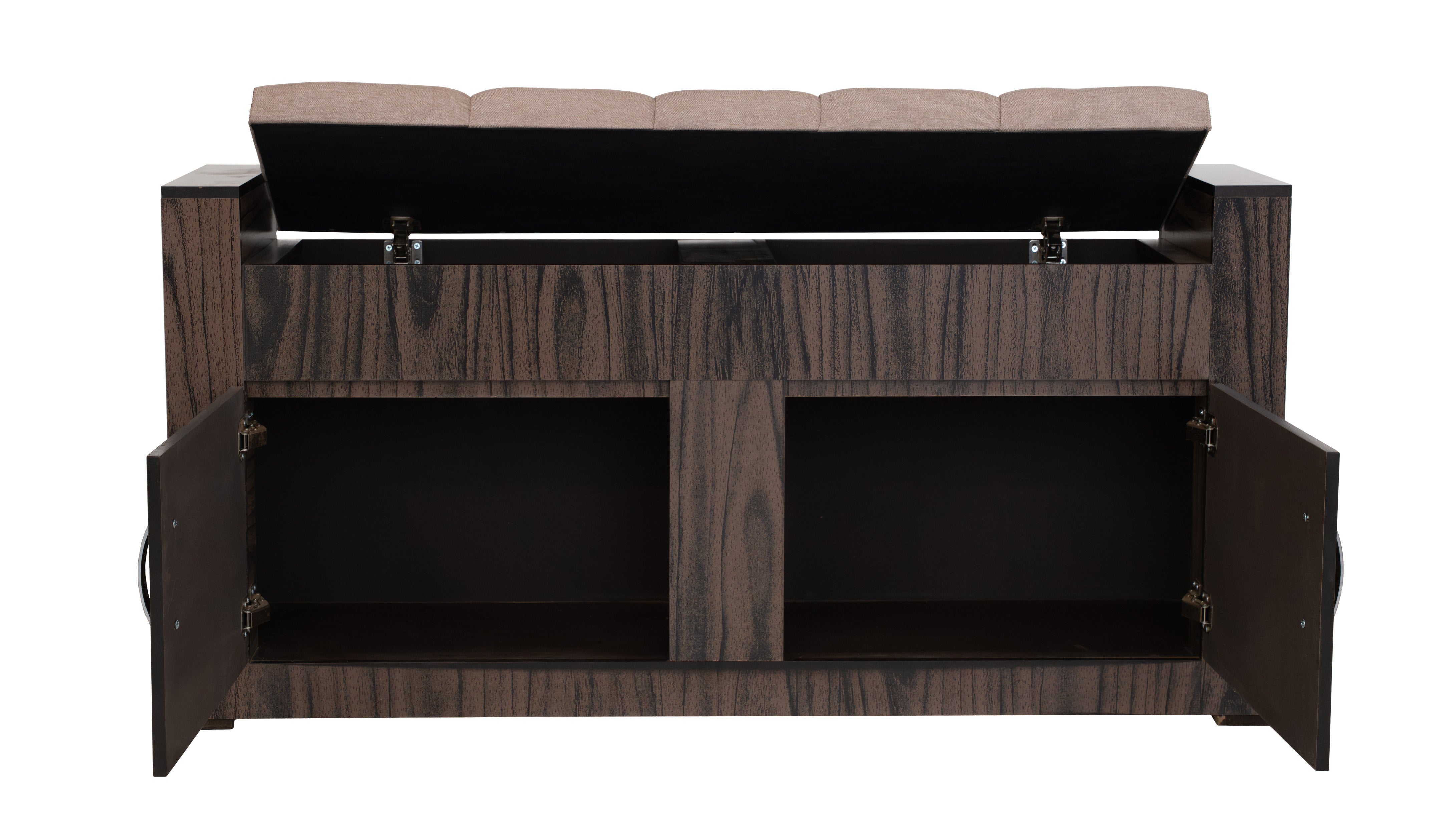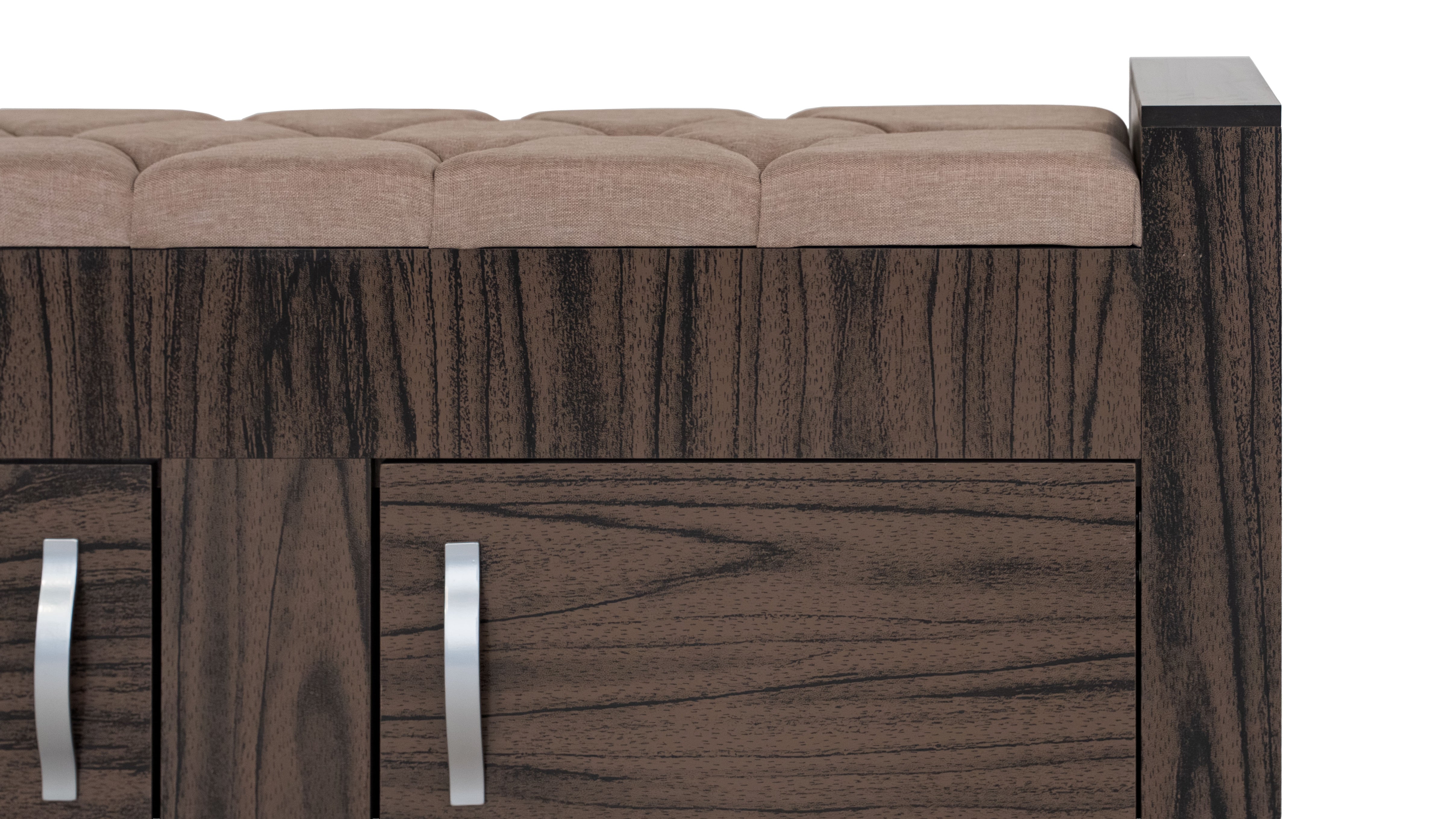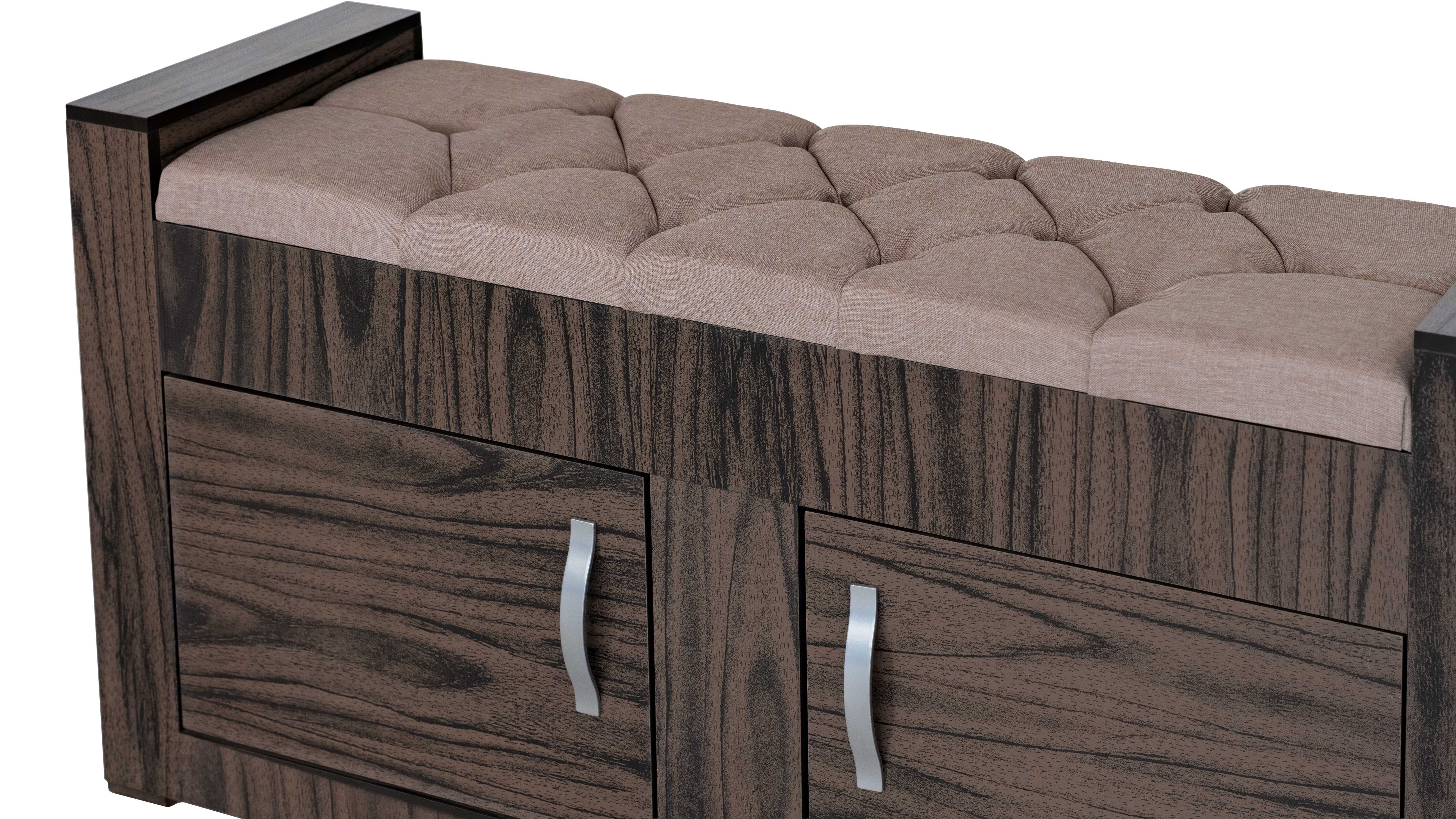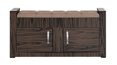 Agrega funcionalidad y estilo a tu recámara con este baúl tipo banca tapizada. Su diseño práctico integra dos compartimentos interiores ideales para almacenar ropa de cama, cojines o accesorios, ayudándote a mantener el orden en tu espacio. La banca superior acolchonada ofrece un asiento cómodo, perfecto para complementar el pie de cama, el vestidor o cualquier rincón del hogar. Fabricado con materiales de alta calidad y acabados elegantes tipo madera, este baúl combina almacenamiento inteligente con diseño decorativo, elevando la funcionalidad de cualquier habitación.