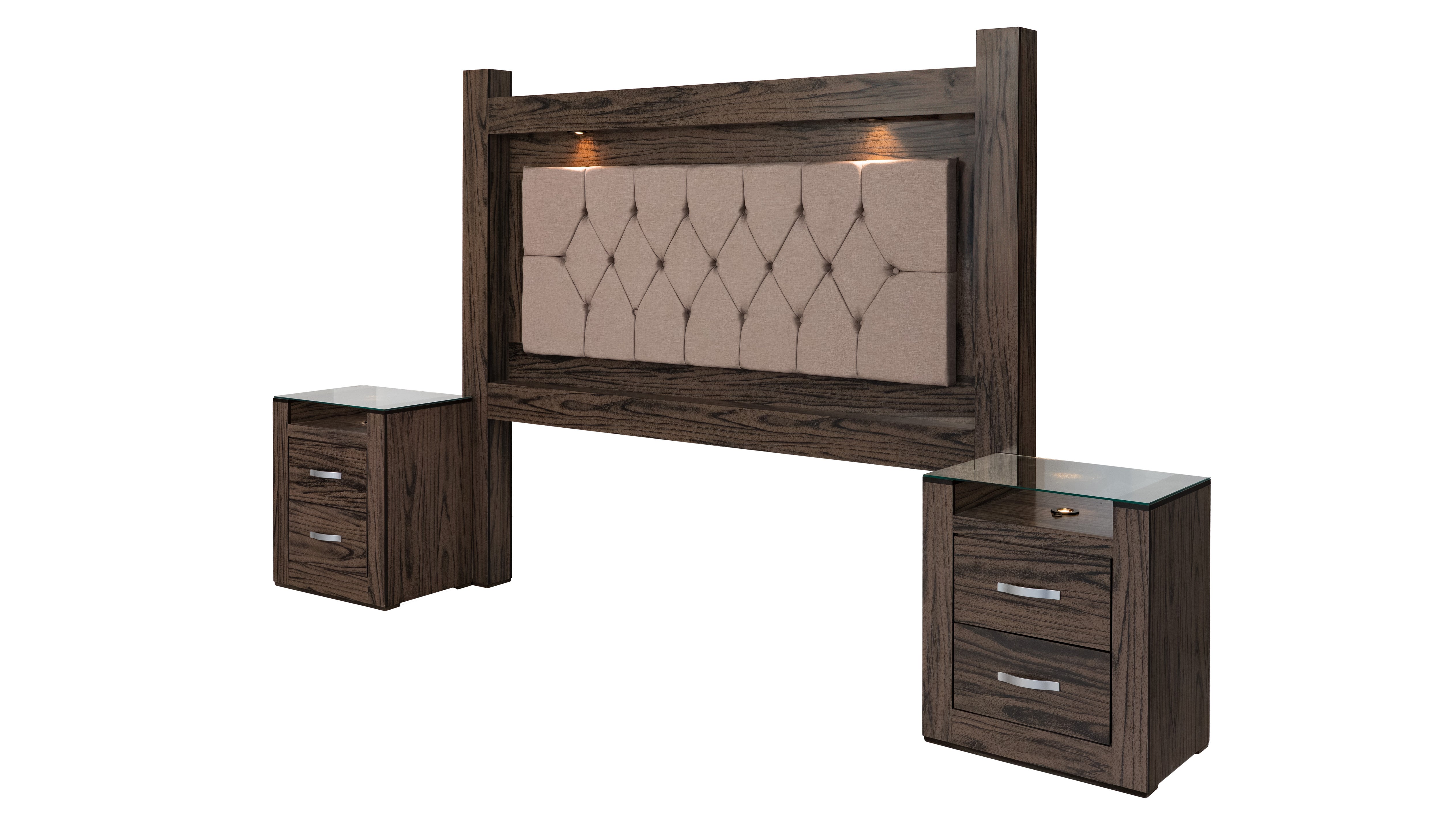 Juego de 3 piezas: incluye cabecera y dos burós. No incluye base ni colchón. Se adapta a cualquier tamaño de base y colchón.