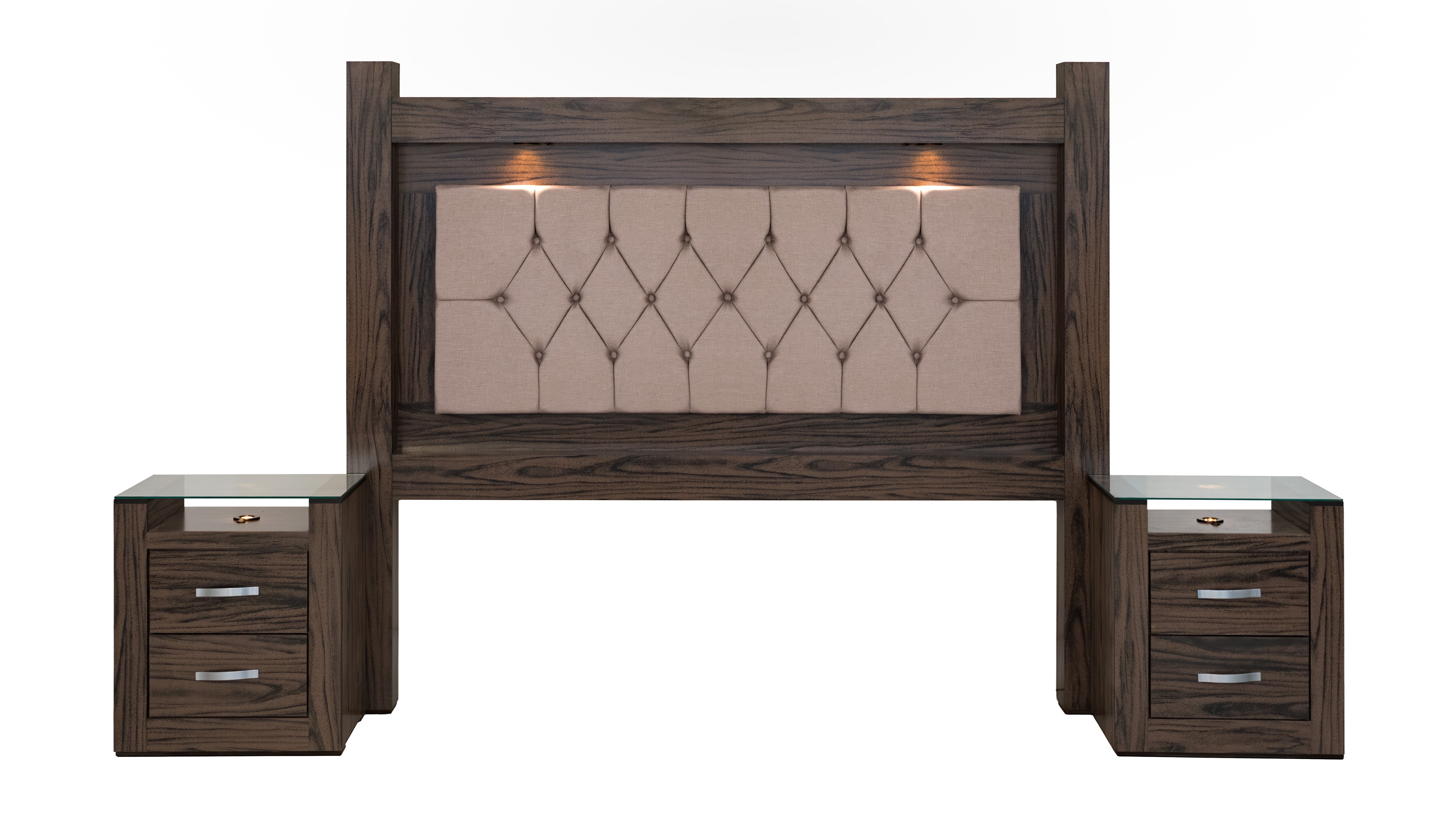 Cabecera con 2 Burós Color nogal. Se entrega armado. No incluye base ni colchón.