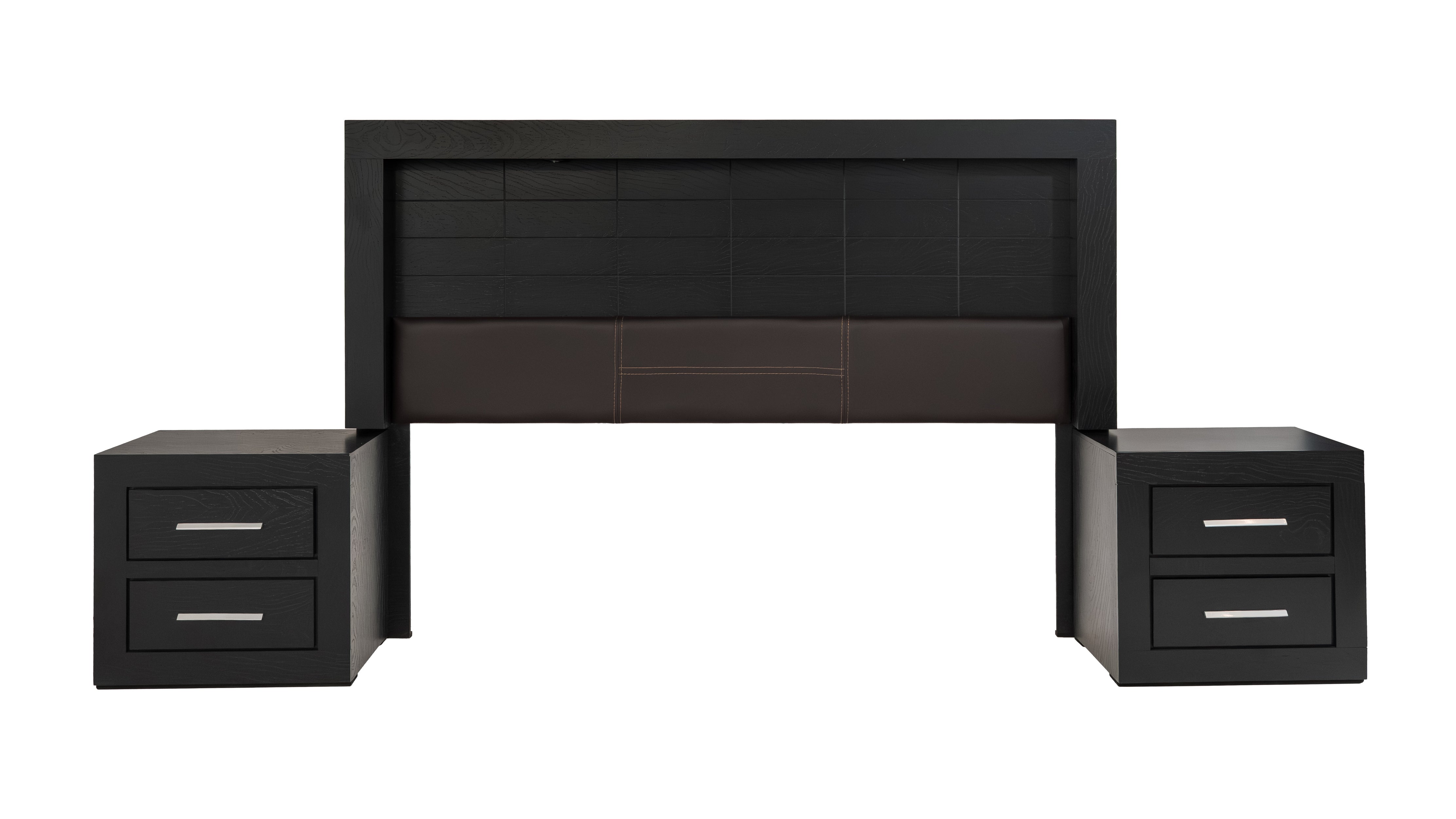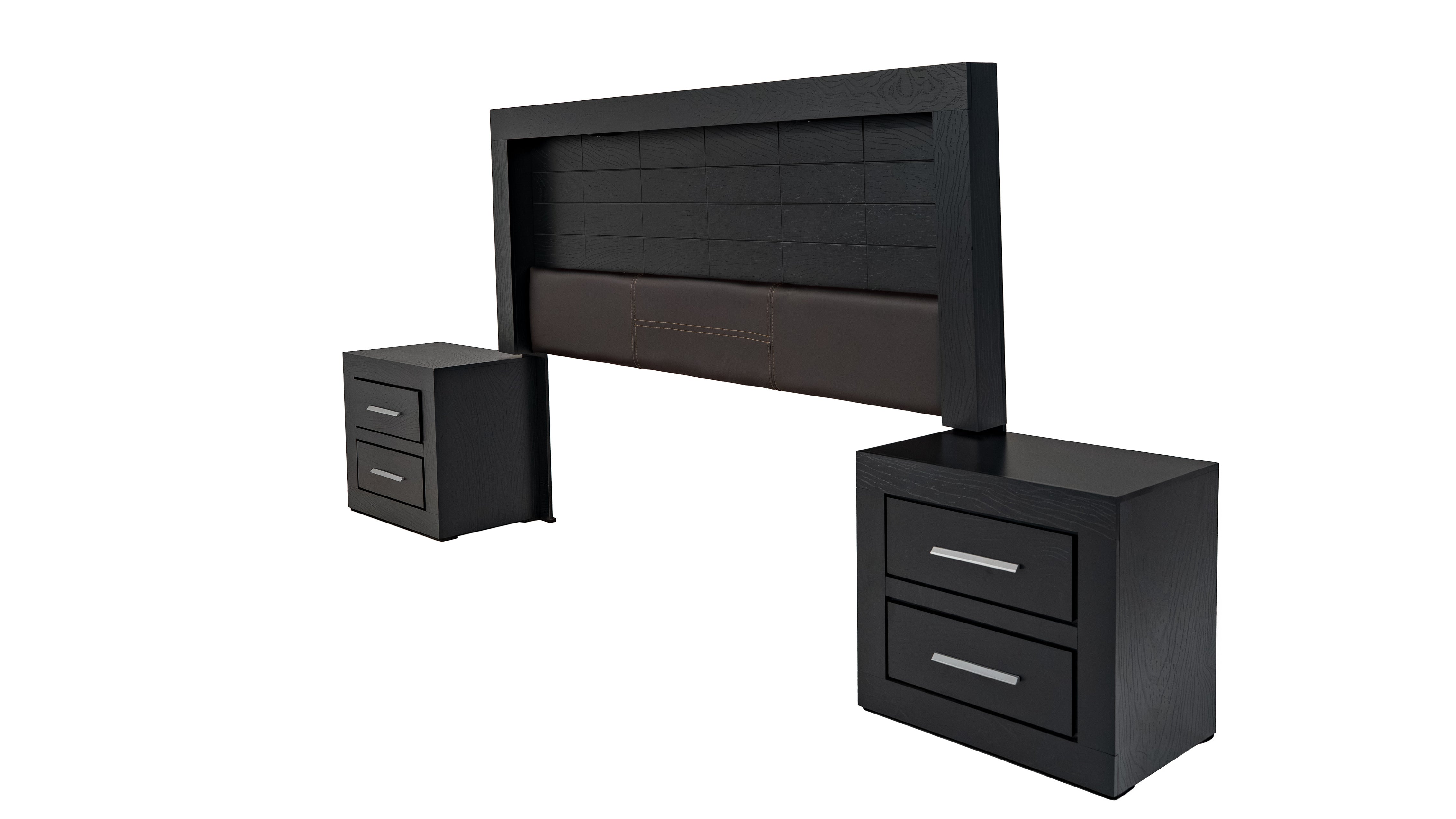 Juego de 4 piezas: incluye cabecera, dos burós y cómoda. No incluye base ni colchón. Se adapta a cualquier tamaño de base y colchón.