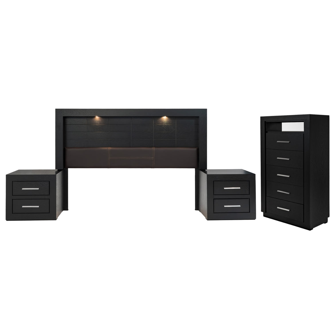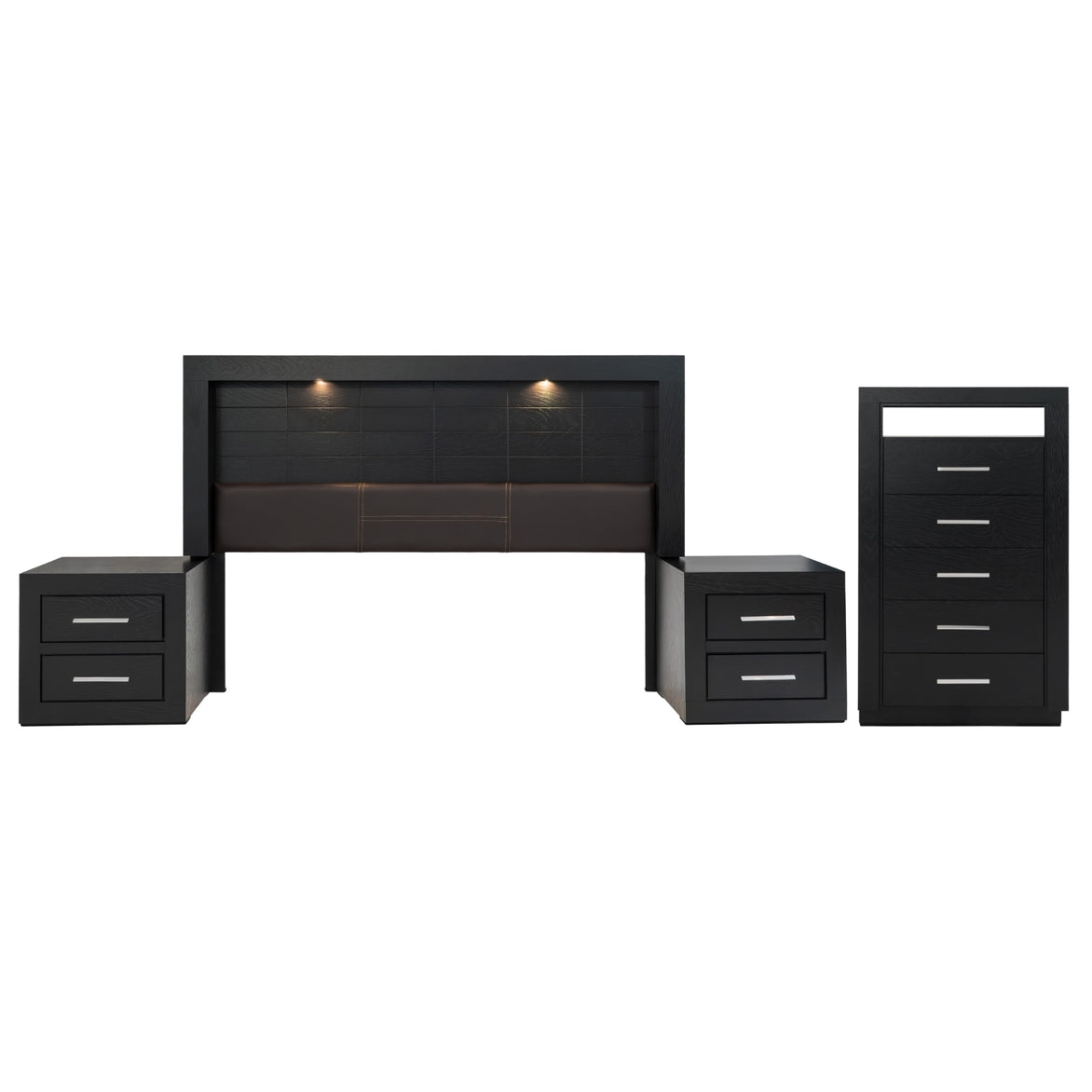 Descubre la fusión perfecta entre elegancia y diseño con este set de recámara completa, que incluye: una cabecera con luz integrada, ideal para un colchón tamaño king; dos burós, cuyo diseño versátil y almacenamiento eficiente mantiene la armonía y el orden; y una amplia cómoda cajonera, para mantener todo organizado. Su diseño elegante y funcional aporta estilo y sofisticación al ambiente. Todos los productos fueron fabricados con materiales duraderos y un diseño atemporal. Se entregan completamente armados para su uso inmediato. Un conjunto perfecto para transformar tu dormitorio en un refugio con estilo y confort. No incluye base para cama ni colchón.