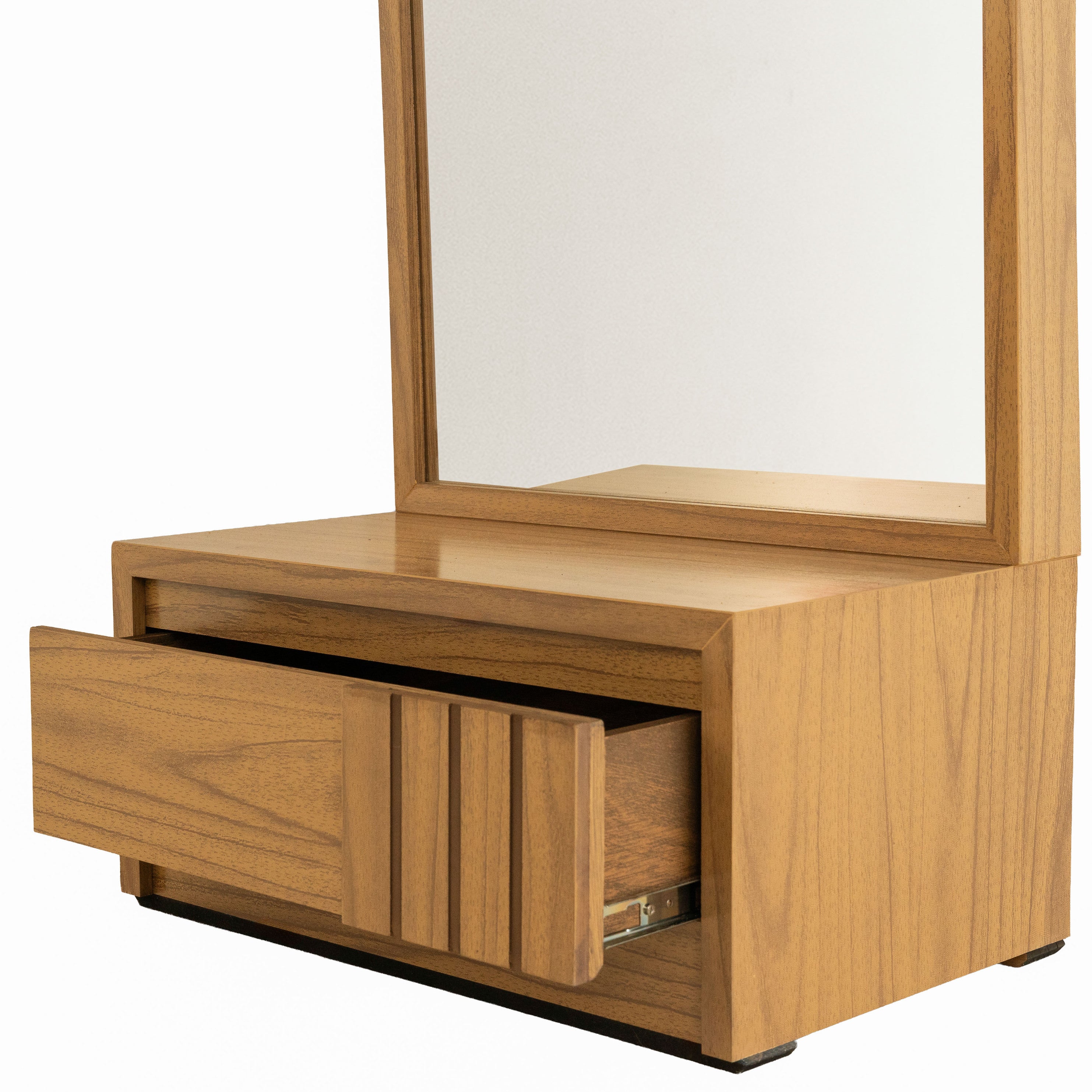 Recámara de 5 Piezas con Cabecera, 2 Burós, Cajonera y Espejo Color natural. Se entrega armado. No incluye base ni colchón.