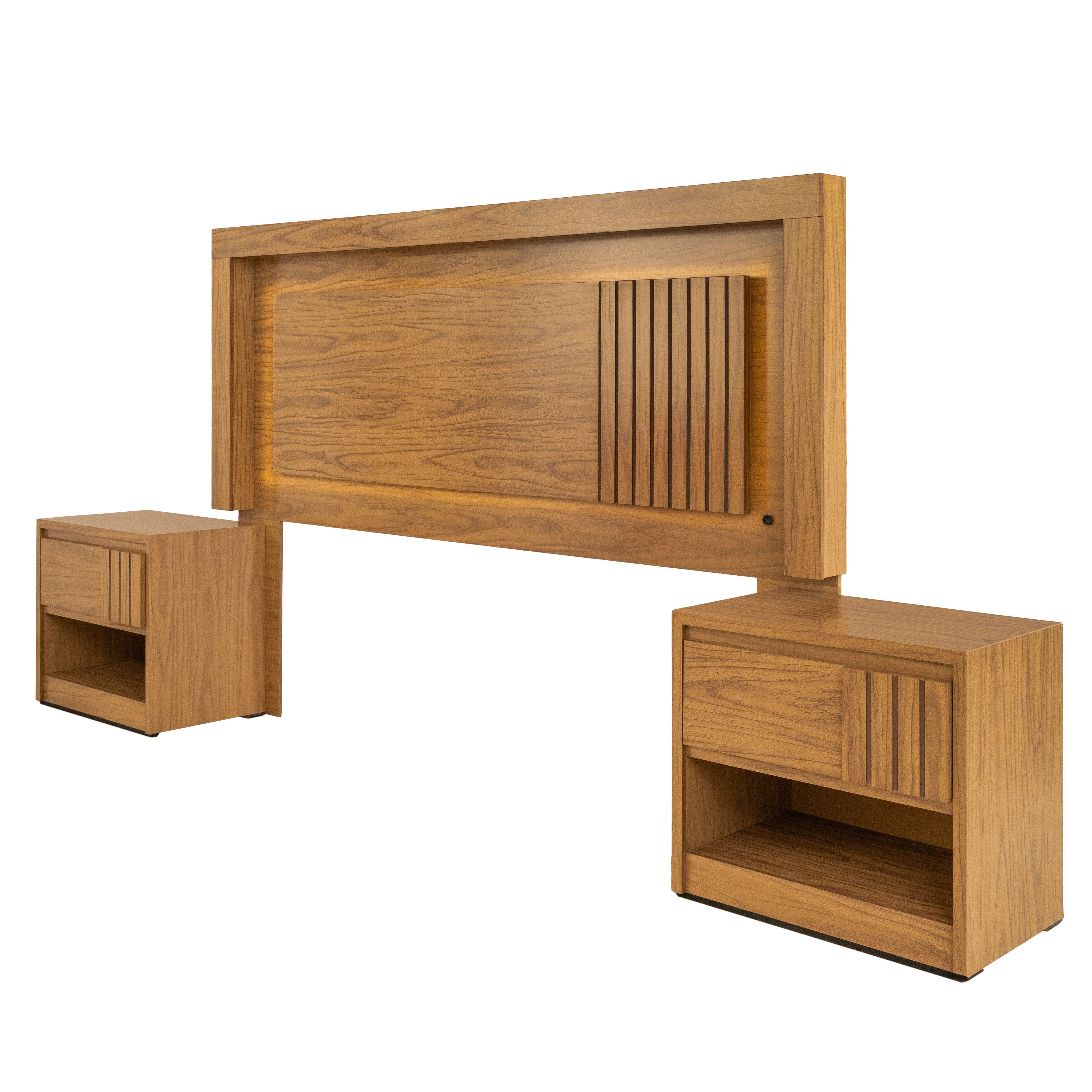 Descubre la fusión perfecta entre elegancia y diseño con este set de recámara completa, que incluye: una cabecera con luz, ideal para un colchón tamaño king; dos burós, cuyo diseño versátil y almacenamiento eficiente mantiene la armonía y el orden; una cómoda y espejo que también funciona como vanity o tocador, proporcionando el espacio perfecto para maquillarse, arreglarse o simplemente prepararse para el día. Su diseño elegante y funcional aporta estilo y sofisticación al ambiente. Todos los productos fueron fabricados con materiales duraderos y un diseño atemporal. Se entregan completamente armados para un uso inmediato. Un conjunto perfecto para transformar tu dormitorio en un refugio con estilo y confort. No incluye base para cama ni colchón.