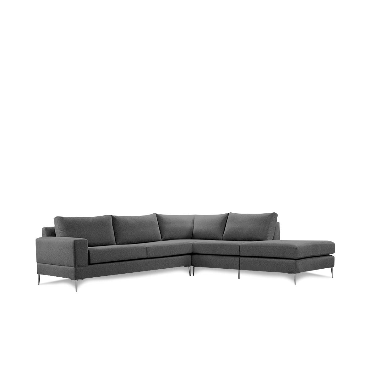 Estructura de madera de pino de primera, horneada y sin nudos, con ensambles reforzados en esquinas, con costuras en color blanco y con cargadores adicionales. El ensamble impide la fatiga de la estructura evitando que el mueble rechine o incluso se pueda llegar a fracturar. El acojinamiento es de hule espuma que excede los 30kg de densidad, siendo 24kg el estándar recomendado. Las patas son de acero cromado. Está tapizado con poliéster de hilo cerrado con backing de algodón, lavable. Extremadamente duradera.