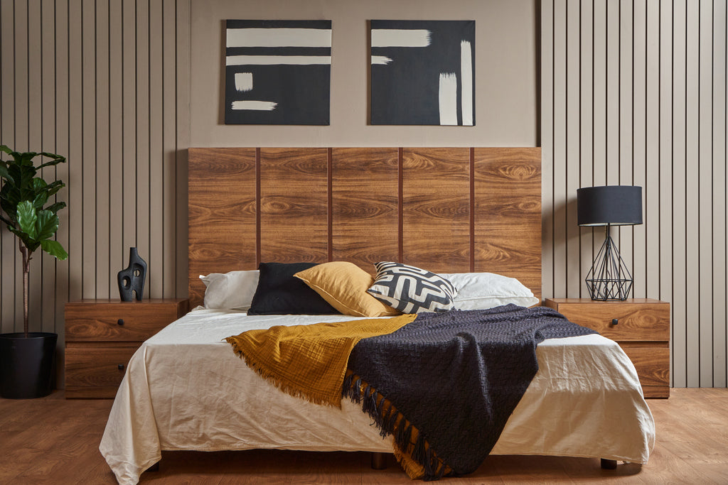 Descubre la fusión perfecta entre elegancia y diseño con este set de recámara completa, que incluye: una cabecera, dos burós, cuyo diseño versátil y almacenamiento eficiente mantiene la armonía y el orden; y una amplia cómoda cajonera, para mantener todo organizado. Su diseño elegante y funcional aporta estilo y sofisticación al ambiente. Todos los productos fueron fabricados con materiales duraderos y un diseño atemporal. Se entregan completamente armados para su uso inmediato. Un conjunto perfecto para transformar tu dormitorio en un refugio con estilo y confort. No incluye base para cama ni colchón.