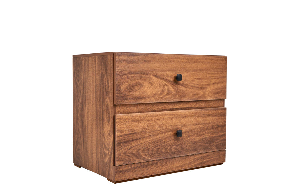 Recámara de 4 piezas en color nogal. Incluye cabecera, 2 Burós, Cómoda. Se adapta a cualquier medida de base y colchón. Se entrega armada. No incluye base ni colchón.