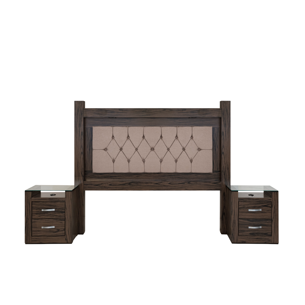 Transforma tu dormitorio con este set que incluye una cabecera y dos burós, fusionando estética y funcionalidad en un solo conjunto. La cabecera, diseñada para camas tamaño King Size, redefine el descanso con su estilo y acabados de alta calidad, aportando calidez y sofisticación a tu espacio. Las mesas de noche ofrecen almacenamiento eficiente y un diseño versátil que complementa perfectamente cualquier habitación. Fabricados con materiales duraderos y un estilo atemporal, se entregan completamente armados para un uso inmediato. Eleva tu hogar con un conjunto pensado para brindar distinción, orden y confort.