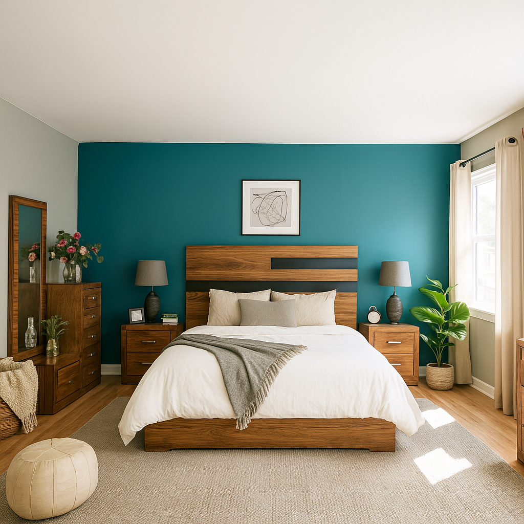 Juego de 5 piezas: incluye cabecera, dos burós, cajonera y espejo. No incluye base ni colchón. Se adapta a cualquier tamaño de base y colchón.