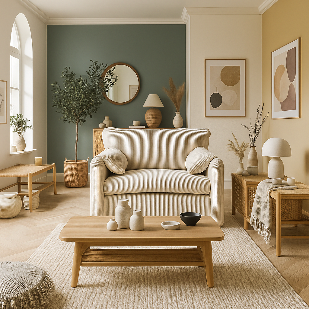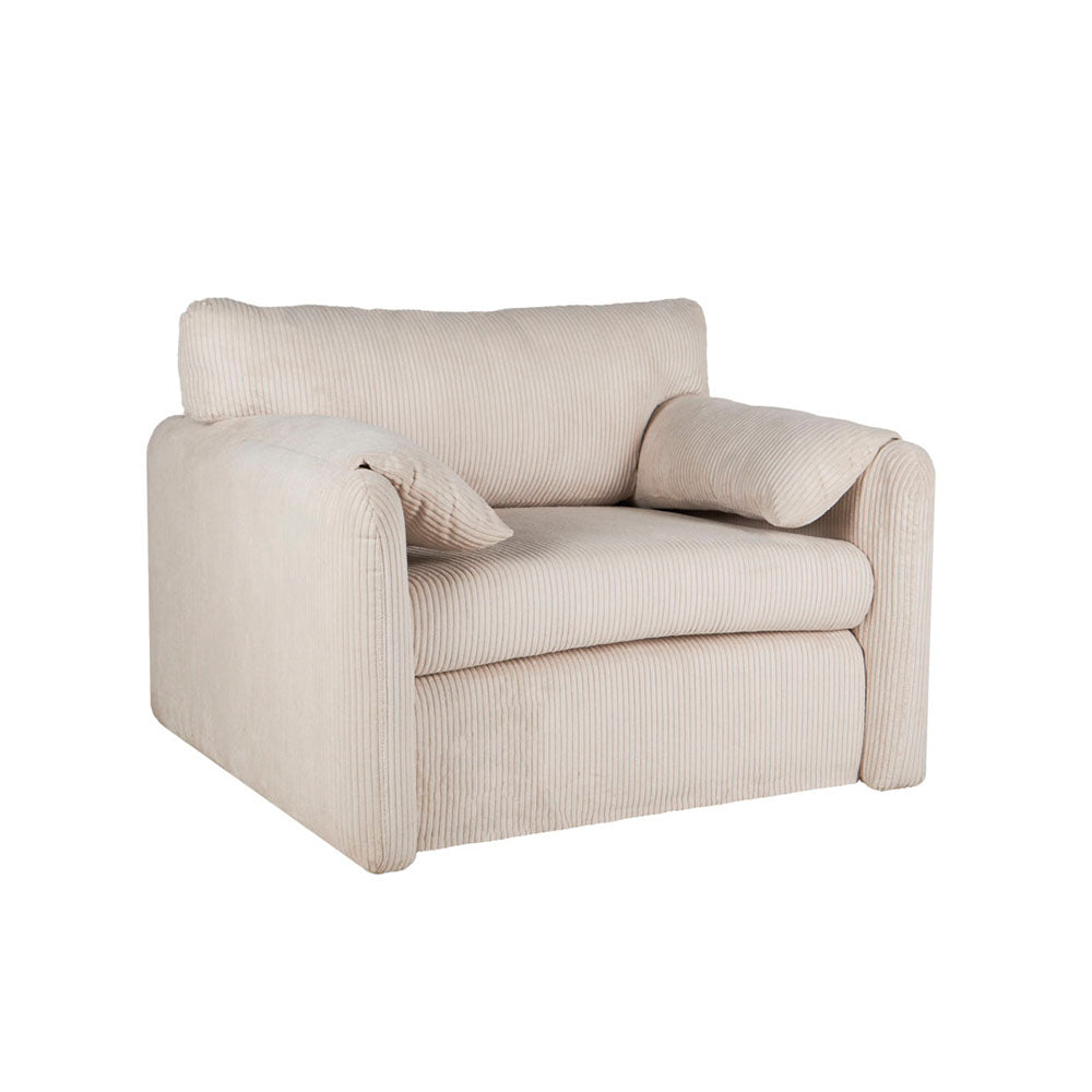 Sillón Individual Tapizado en Tela Chenille Color Marfil. Estructura de Madera Sólida