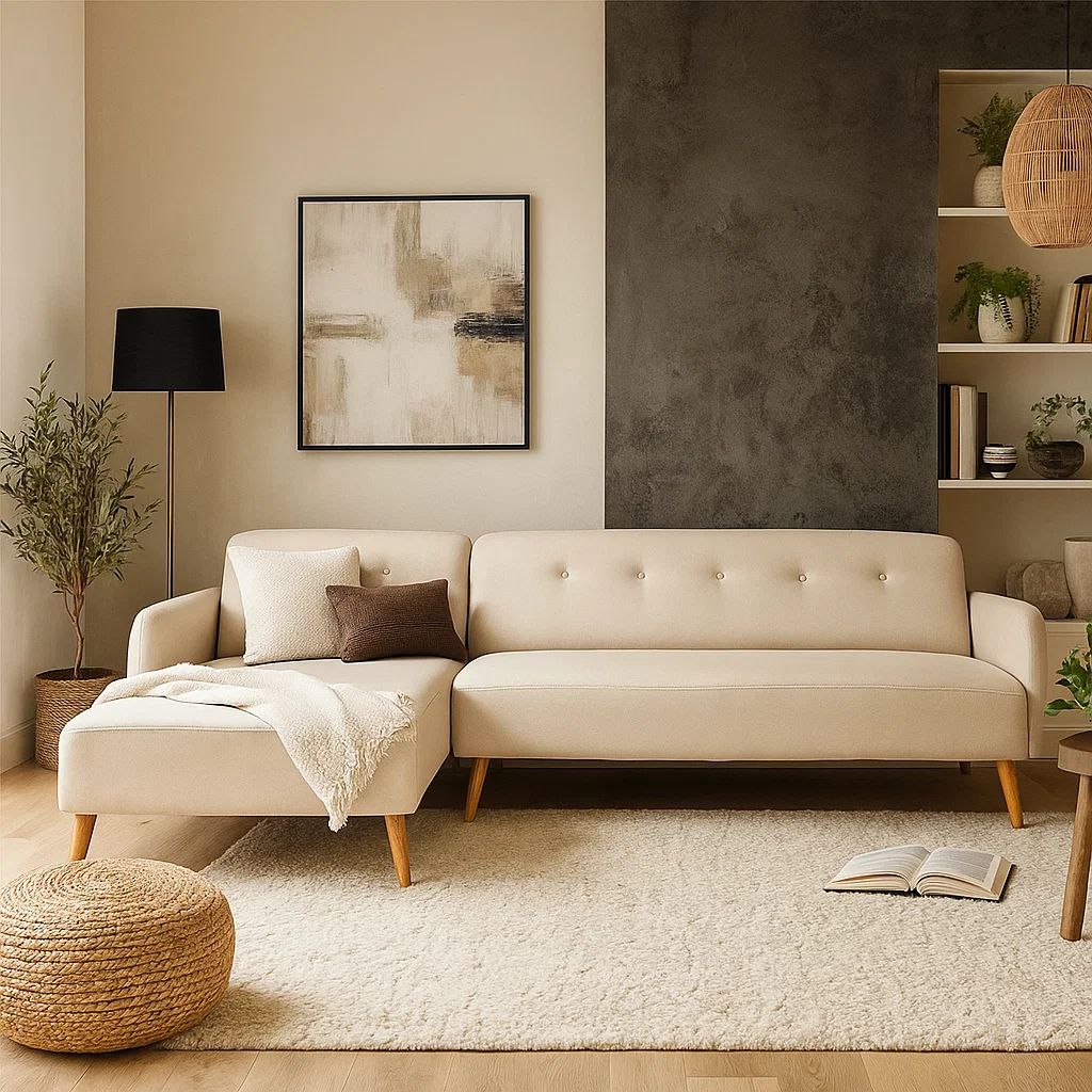 Sofá escuadra izquierda doble cama Monza - Hueso