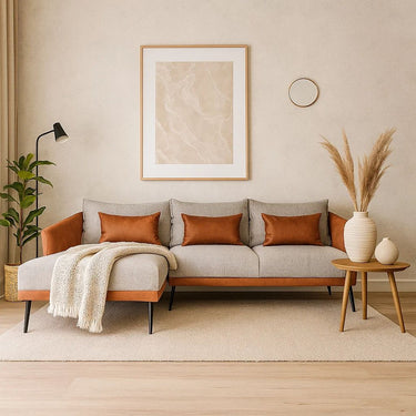 Sofá escuadra izquierdo Ines - Gris Claro y Café