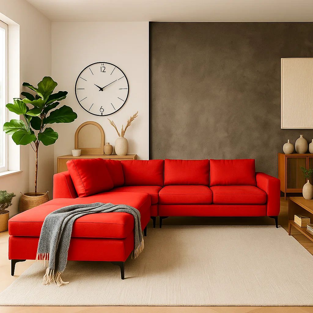 Sofá escuadra izquierdo Etna - Rojo con patas negras