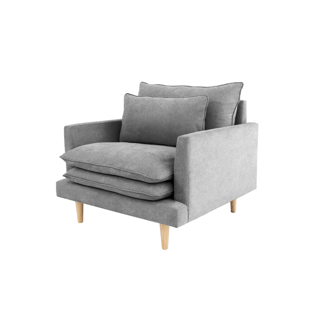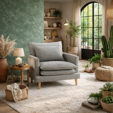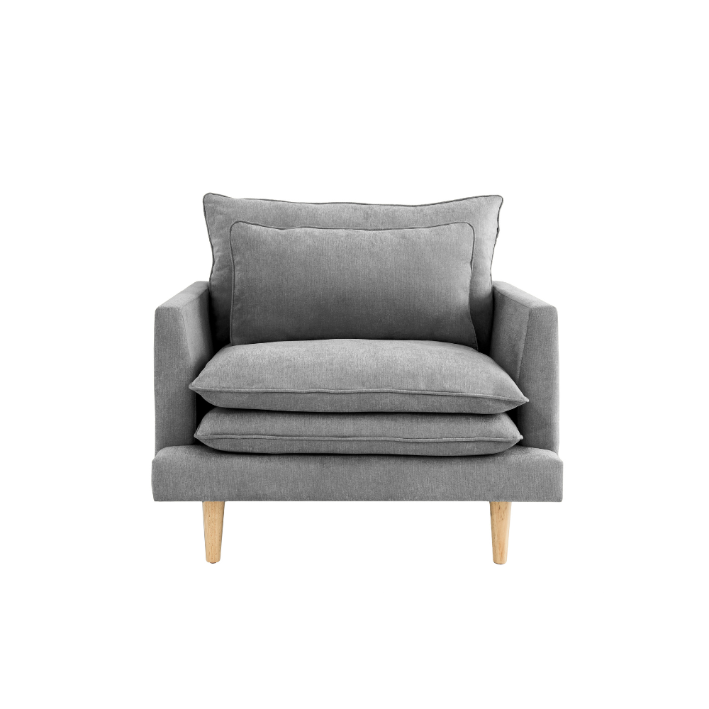 Hay muebles que se miran, y otros que se sienten. Nuestro sillón de una plaza pertenece a los segundos. Transforma cualquier rincón en un espacio de calma y bienestar. Su tapizado evoca la naturalidad y la elegancia de lo sencillo, mientras sus fundas dobles reflejan un diseño pensado para el confort absoluto. Sus amplios cojines, ofrecen espacio suficiente para maximizar el descanso, volviéndose el lugar donde el día se rinde y la calma comienza. Las patas de madera natural aportan un toque cálido y contemporáneo que armoniza con cualquier estilo de interior, aportando equilibrio a su silueta contemporánea.