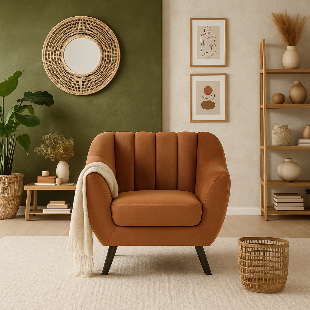 El Sillón en microterciopelo color canela es la elección perfecta para quienes buscan un mueble elegante, funcional y acogedor. Su diseño limpio y contemporáneo se adapta fácilmente a distintos estilos de decoración, desde lo rústico hasta lo moderno, aportando un toque de calidez y distinción al ambiente.