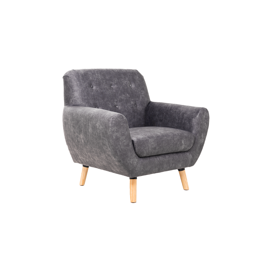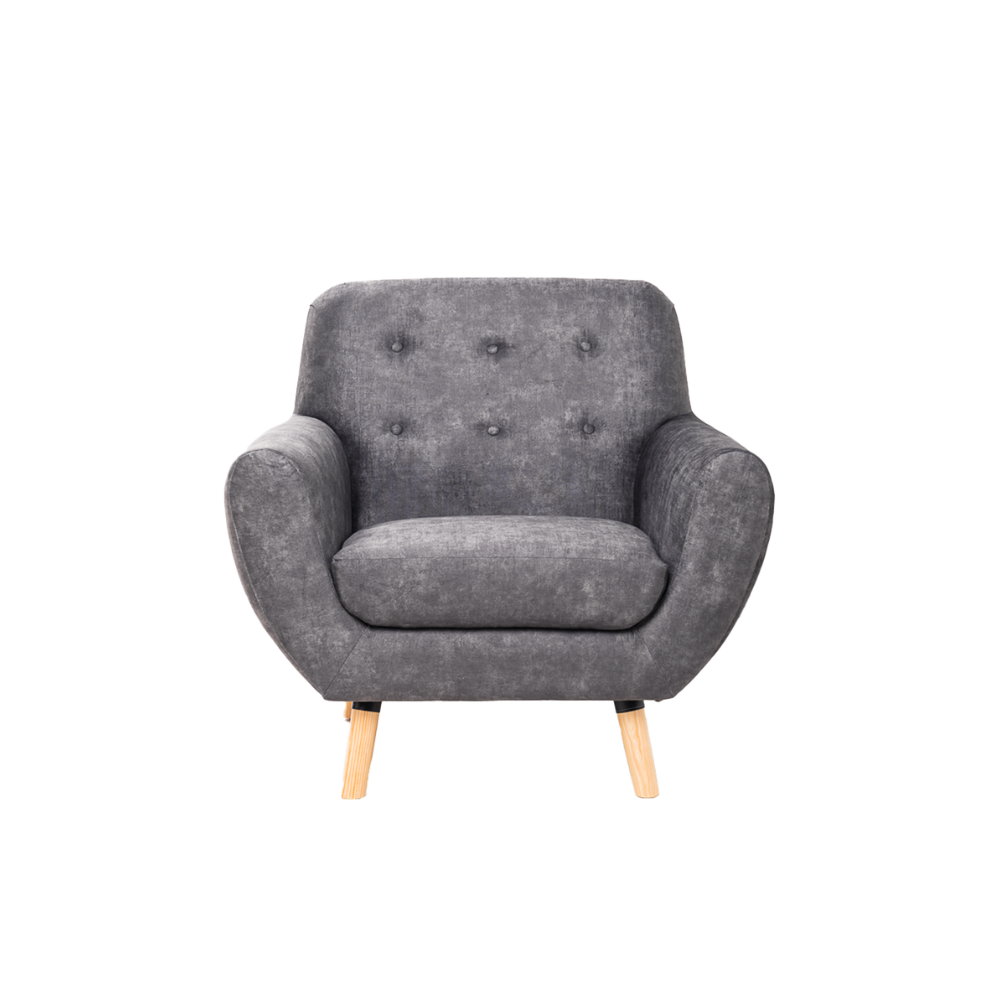 Nuestro sillón Luna de aspecto ligero ideal para ambientes minimalistas. Pequeños detalles como las patas de madera de estilo nórdico marcan la diferencia. Su tapizado en tela te resultará muy cómodo y mullido al sentarte.