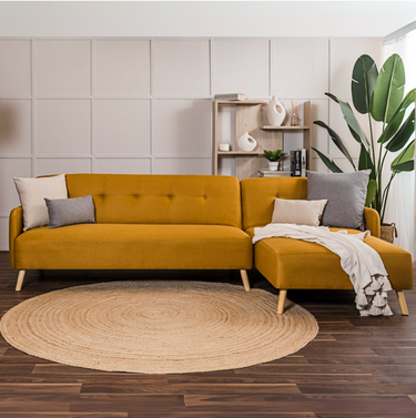Sofá escuadra derecha doble cama Monza - Mostaza