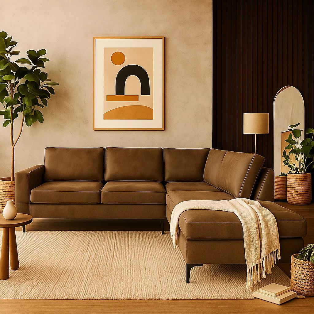 Sala Escuadra Derecha Etna - Tela Tipo Piel Chocolate