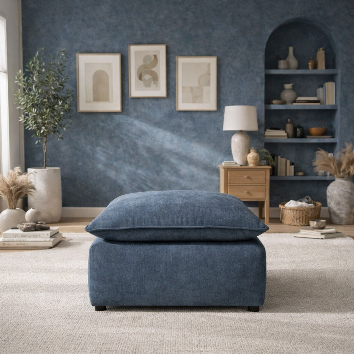 Nuestro taburete con silueta plana y look de "almohada", diseñado para ofrecer confort excepcional en salas de TV y espacios de descanso. Este taburete es ideal para quienes valoran el verdadero descanso: su profundidad generosa permite disfrutar de momentos únicos y excepcionales de relajación. El revestimiento ultra suave del taburete te envuelve en confort absoluto, asegurando que no querrás separarte de él. Gracias al grosor de su asiento, proporciona una sensación similar a estar acostado en una cama, perfecto para una noche de descanso reparador o para su uso diario con máximo confort. Al combinarlo con el sofá puedes jugar con las formas y convertirlo en una cama individual o una sala esquinera de cualquier lado que acomode mejor a tu espacio. Además, está relleno de fibra down, un material ecológico y sustentable que tiene una tecnología que te hace pensar que estás sentado sobre plumas de ganso y lo mejor es que siempre va a recuperar su densidad. No incluye el sofá de las imágenes.