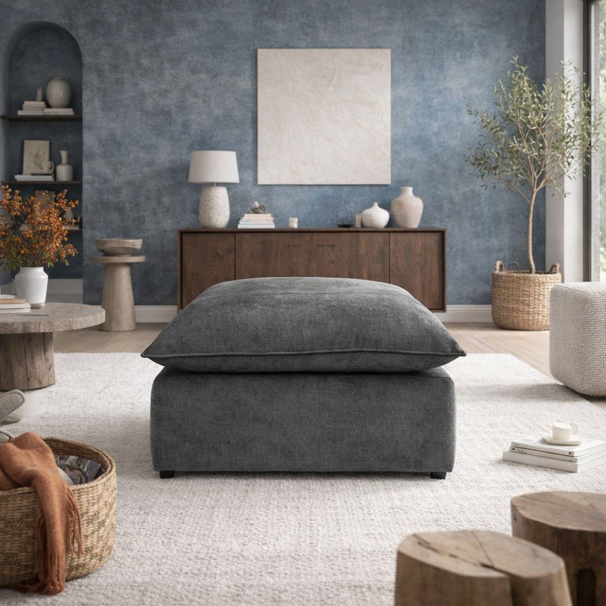 Nuestro taburete con silueta plana y look de "almohada", diseñado para ofrecer confort excepcional en salas de TV y espacios de descanso. Este taburete es ideal para quienes valoran el verdadero descanso: su profundidad generosa permite disfrutar de momentos únicos y excepcionales de relajación. El revestimiento ultra suave del taburete te envuelve en confort absoluto, asegurando que no querrás separarte de él. Gracias al grosor de su asiento, proporciona una sensación similar a estar acostado en una cama, perfecto para una noche de descanso reparador o para su uso diario con máximo confort. Al combinarlo con el sofá puedes jugar con las formas y convertirlo en una cama individual o una sala esquinera de cualquier lado que acomode mejor a tu espacio. Además, está relleno de fibra down, un material ecológico y sustentable que tiene una tecnología que te hace pensar que estás sentado sobre plumas de ganso y lo mejor es que siempre va a recuperar su densidad. No incluye el sofá de las imágenes.