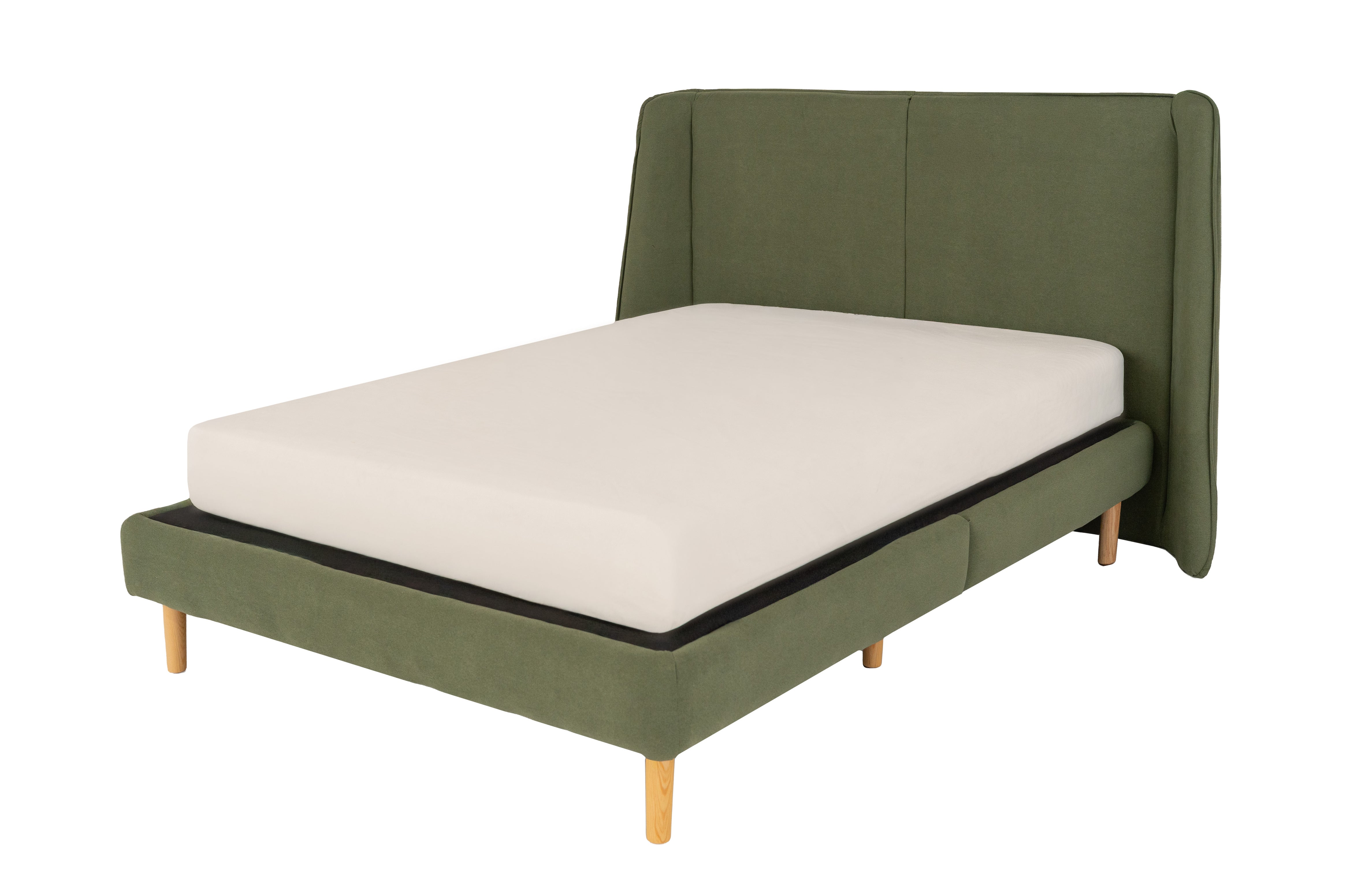Cama Matrimonial Color Verde Grass. Cabecera con Base Rellena de Hule Espuma. Estructura de Madera Maciza