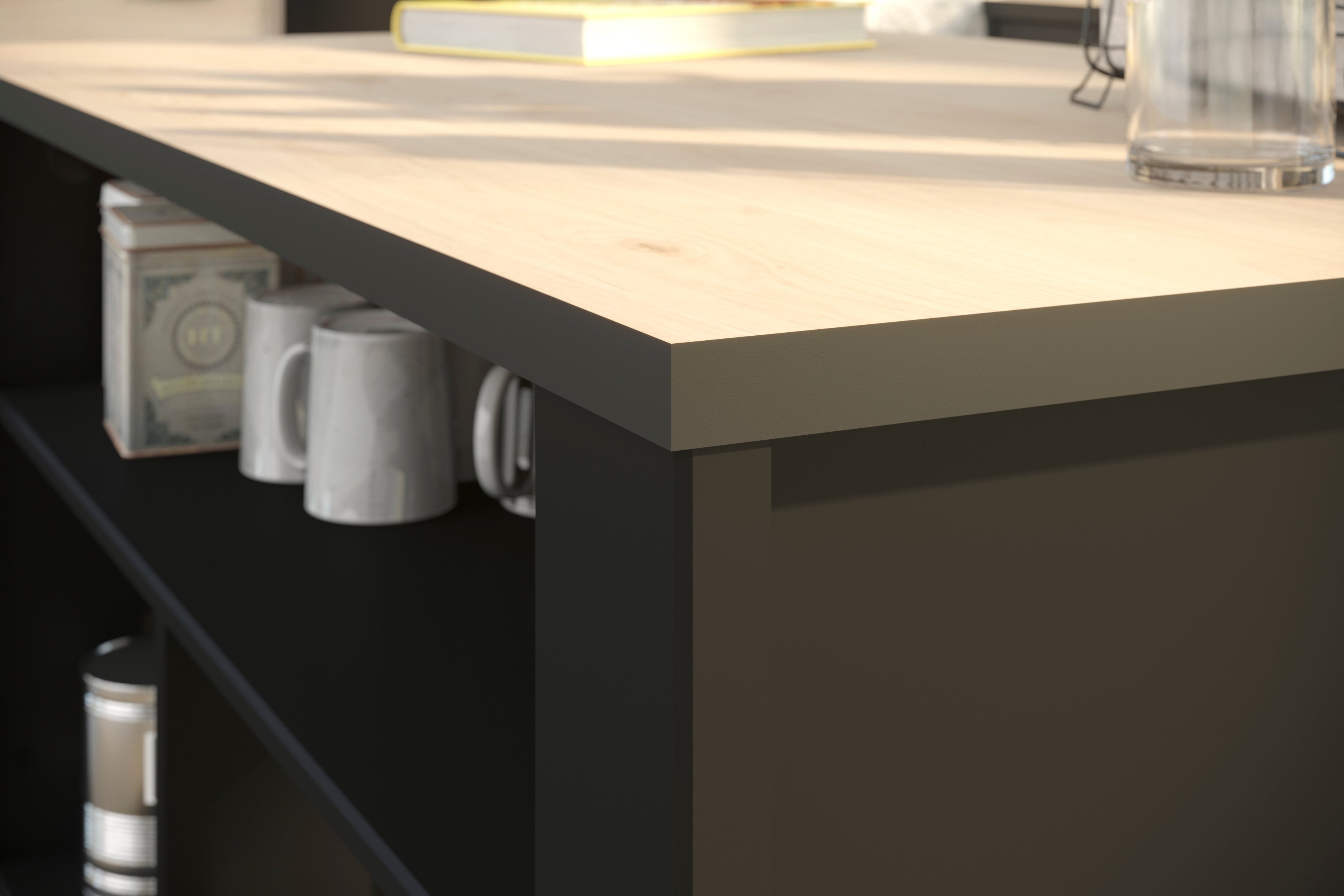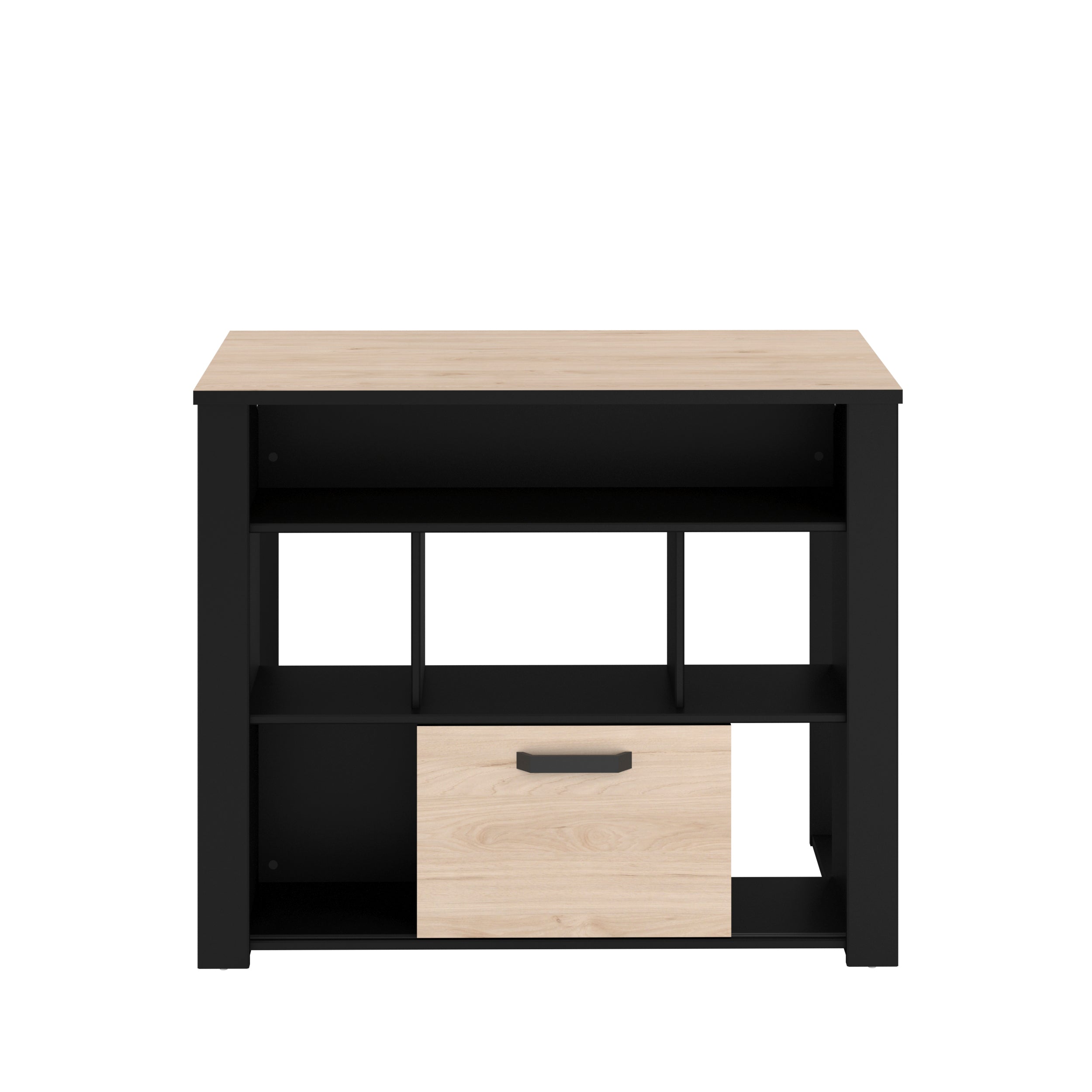 almacenamiento abiertos y 1 cajón de gran capacidad para guardar otros objetos de cocina. Su diseño en dos tonos, otorga un estilo